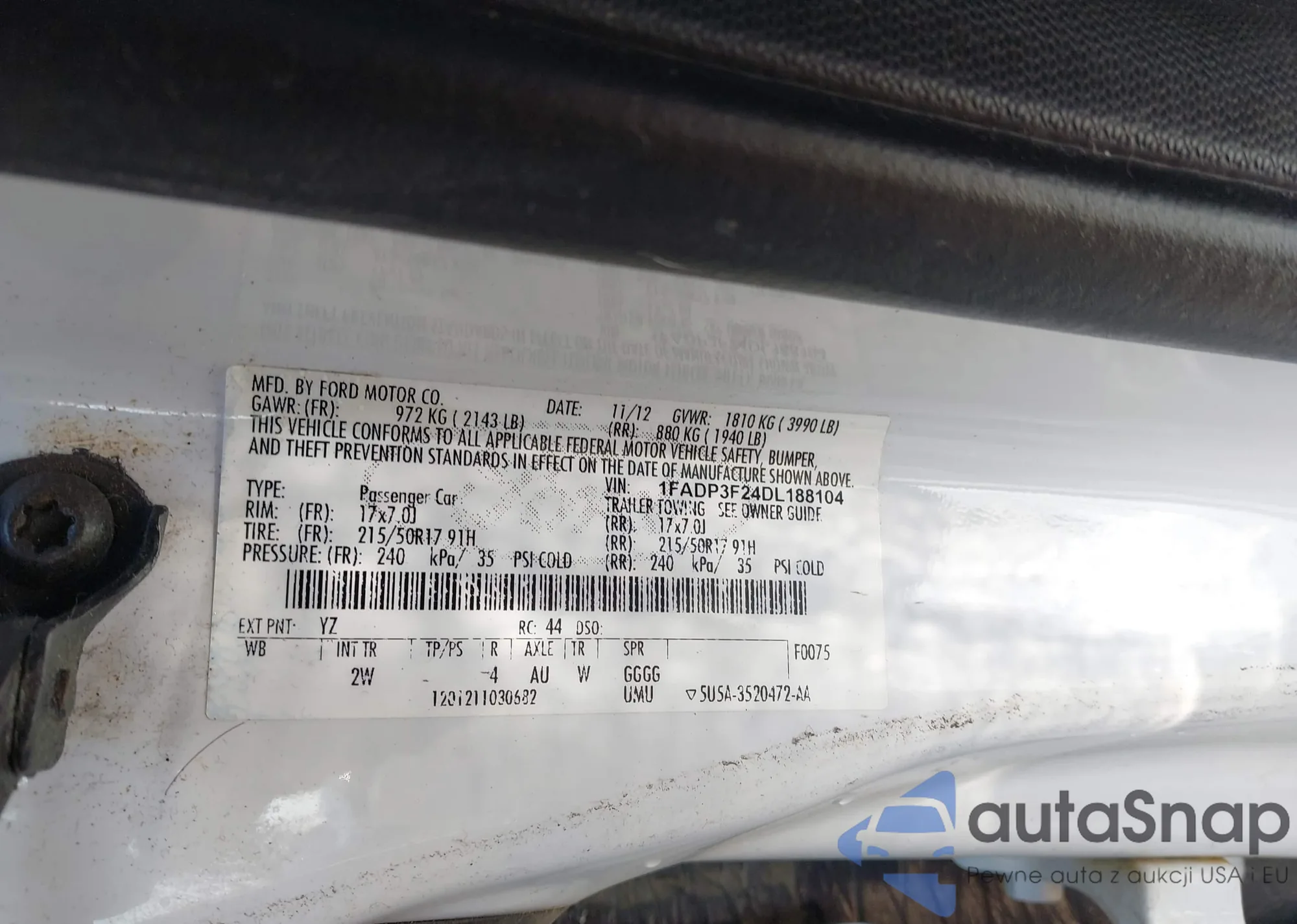 VIN: 1FADP3F24DL188104