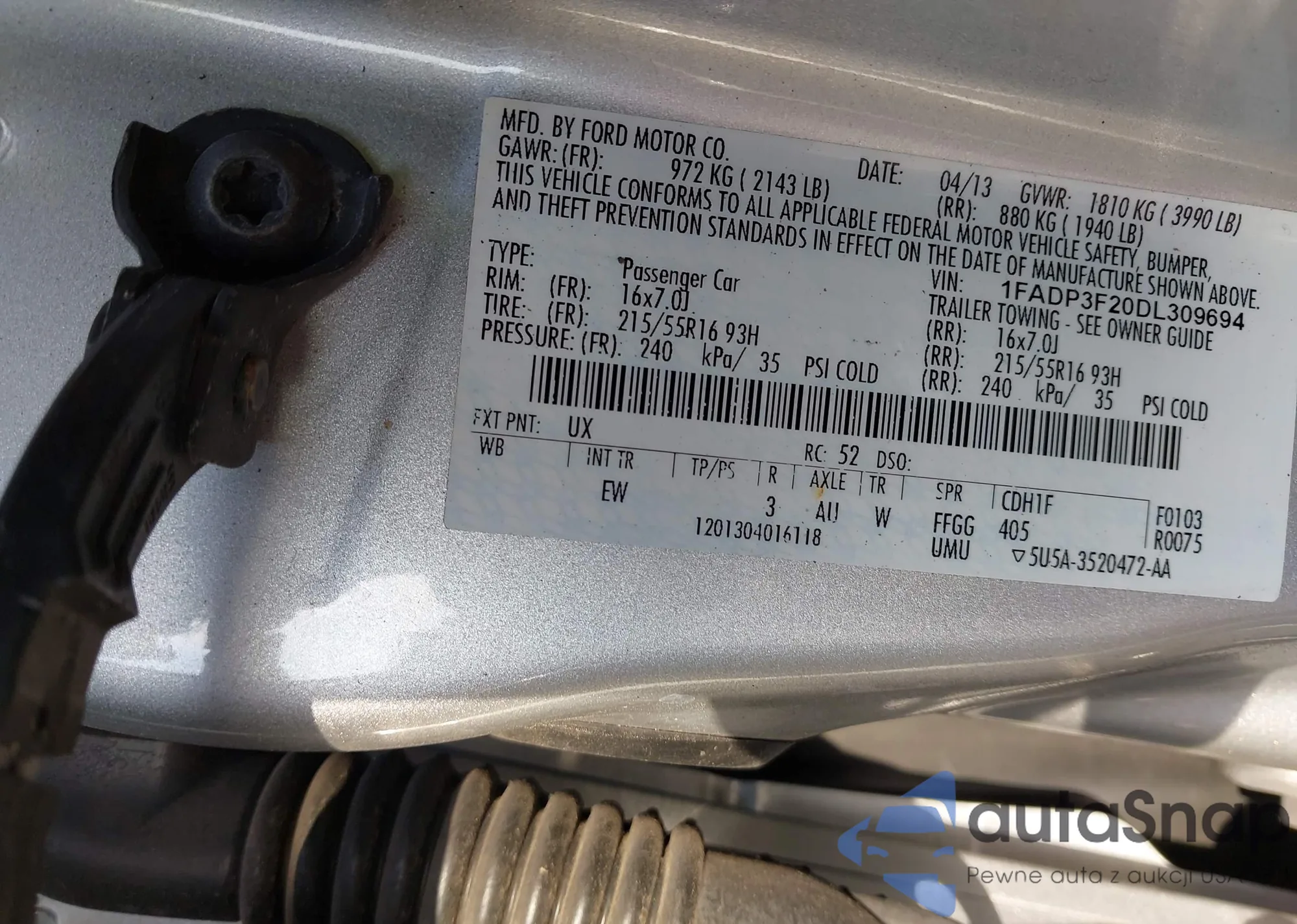 VIN: 1FADP3F20DL309694