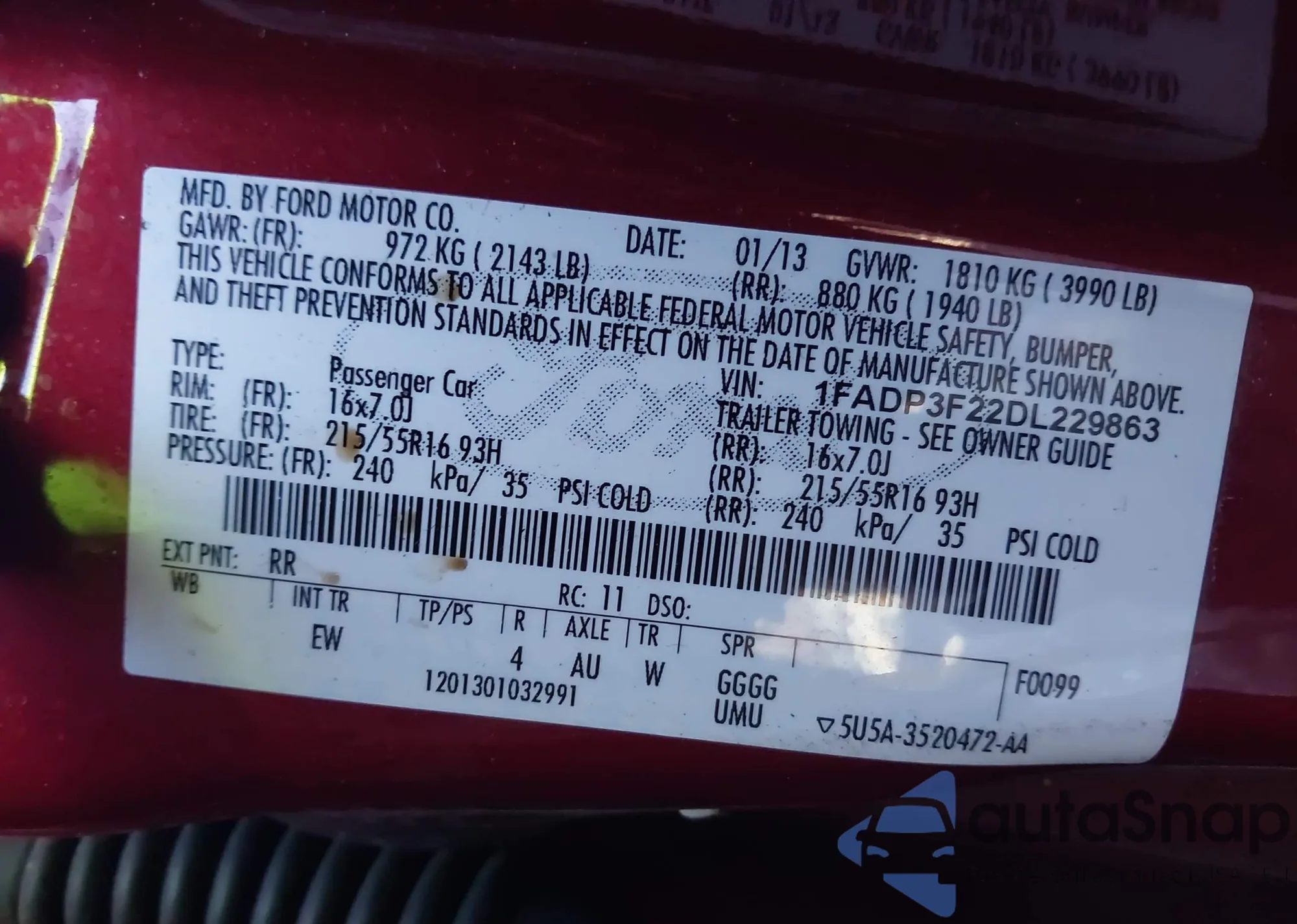 VIN: 1FADP3F22DL229863