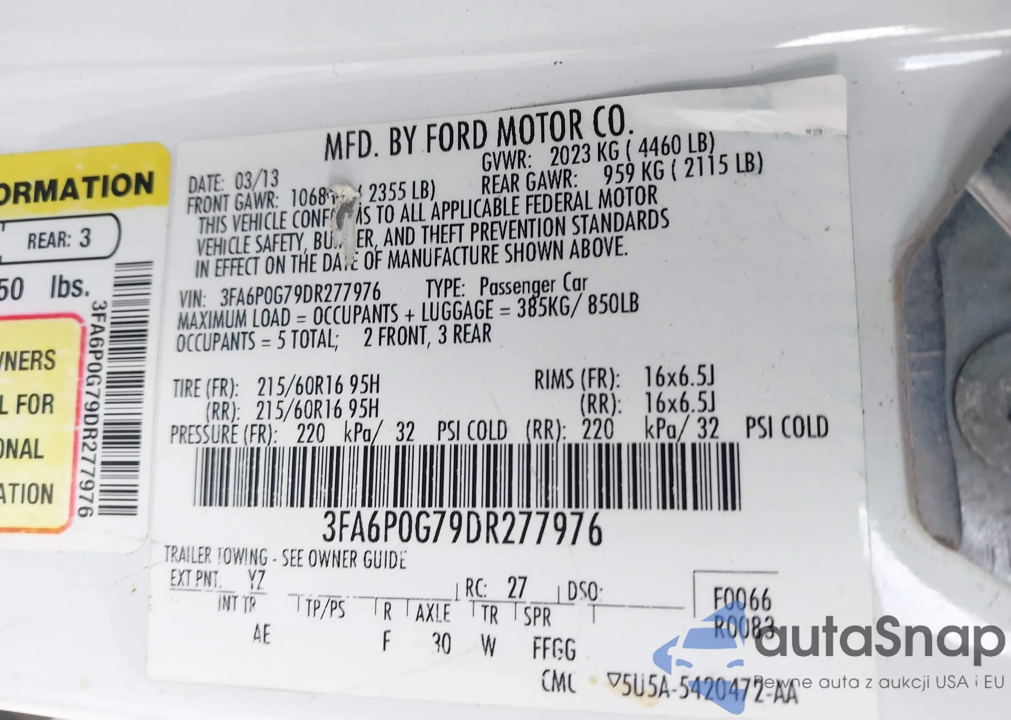 The car Ford Fusion 2013 (VIN 3FA6P0G79DR277976) has not been auctioned before. The documents are clean, and the mileage matches or is below the market average. Sold by an insurance company – we recommend purchase. Delivery to the port will take approx. 6–8 weeks.