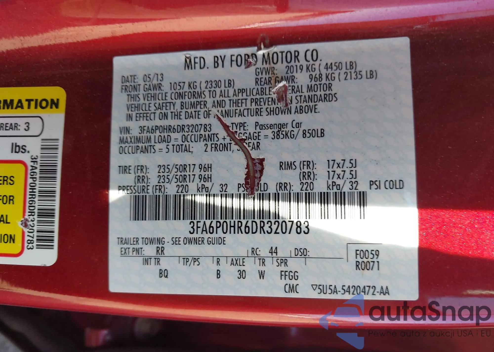 VIN: 3FA6P0HR6DR320783