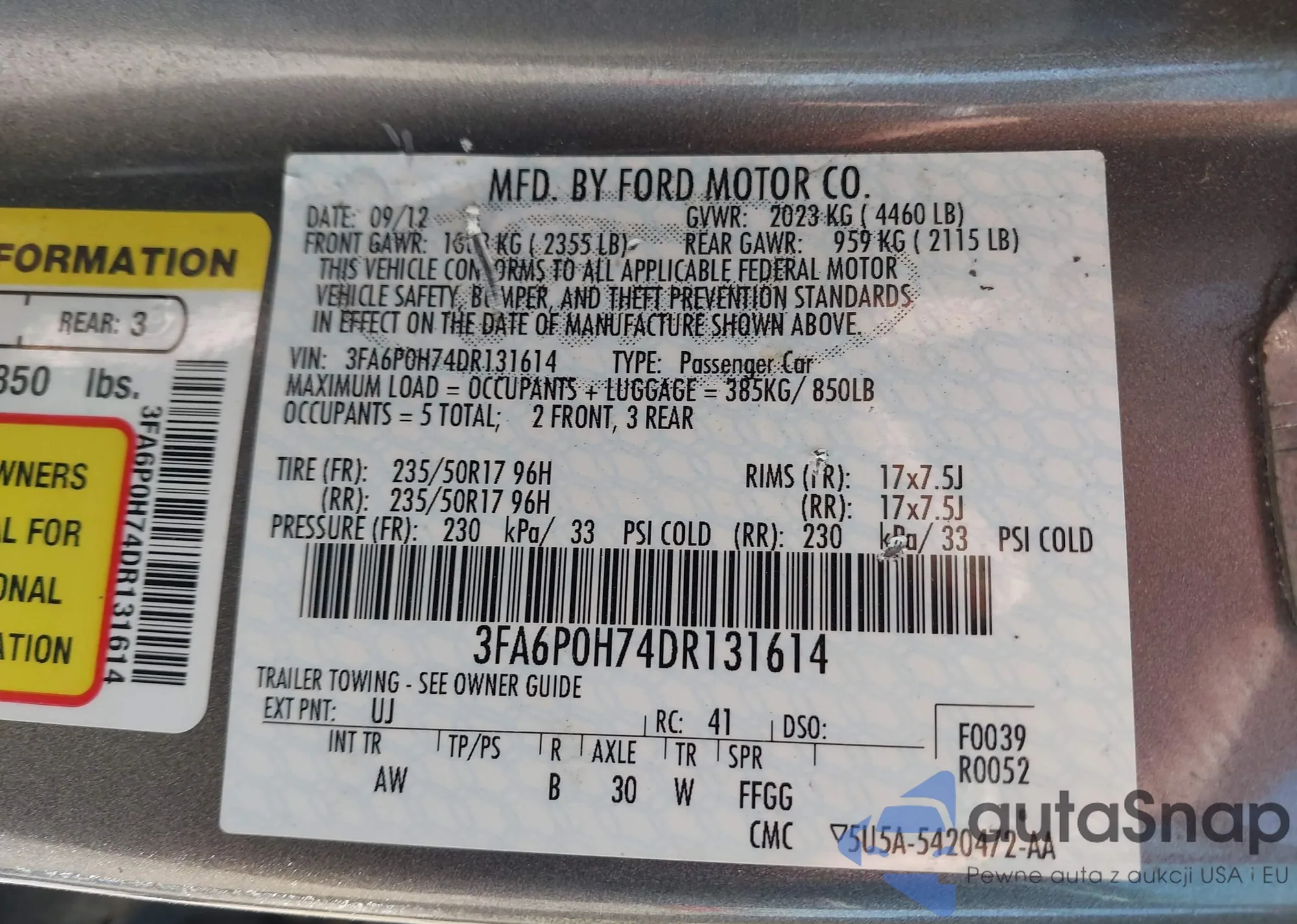 VIN: 3FA6P0H74DR131614