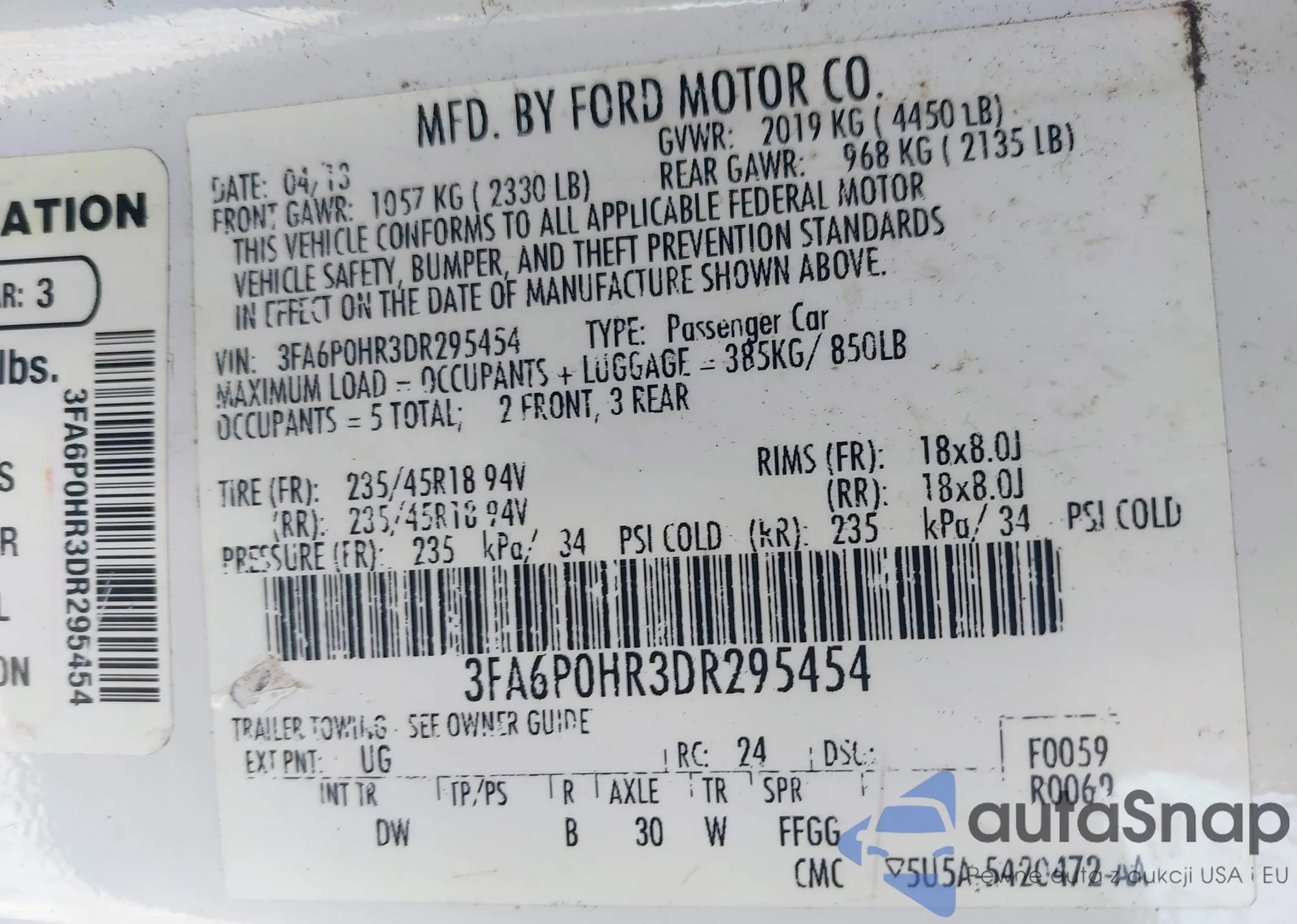 VIN: 3FA6P0HR3DR295454