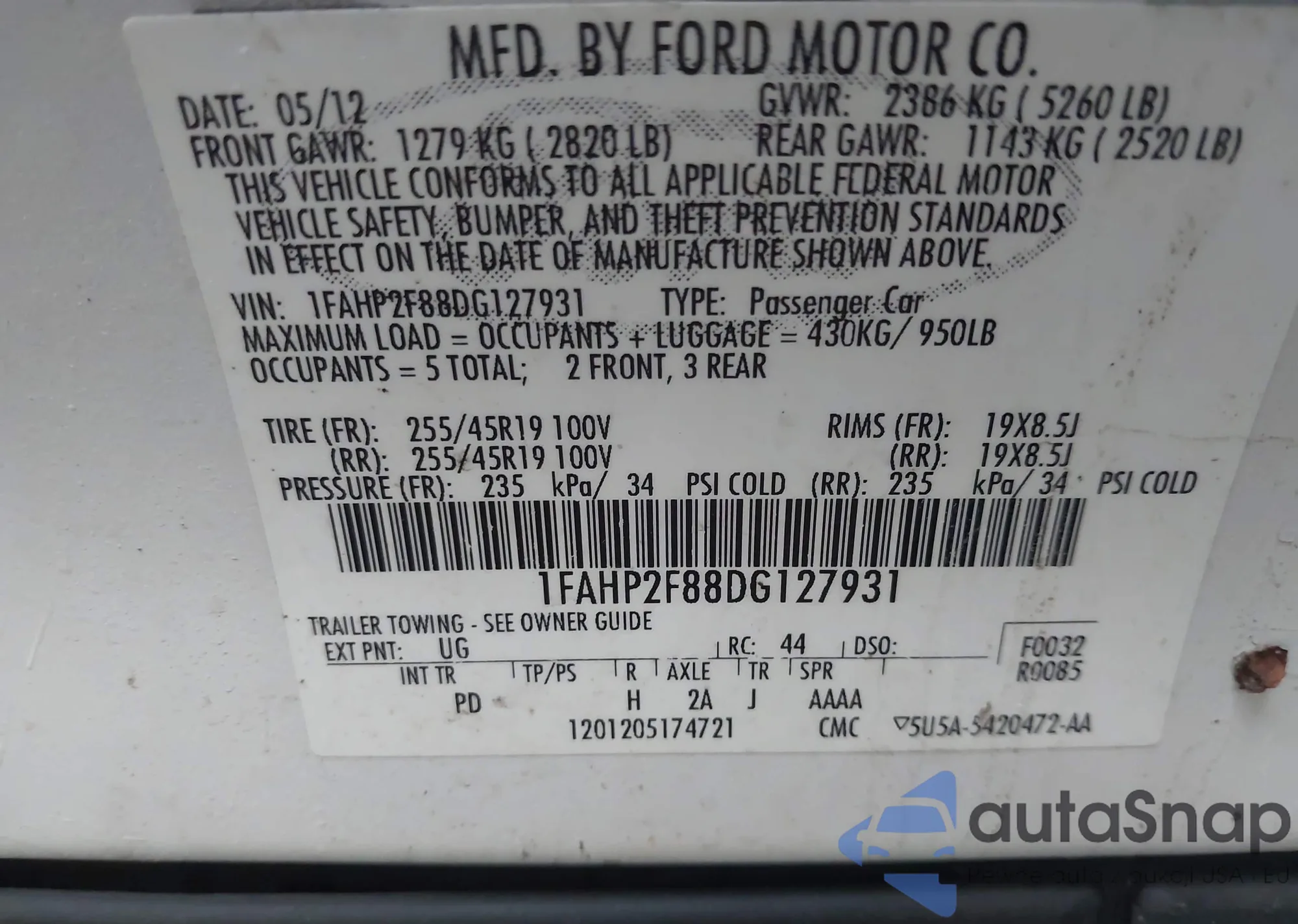 VIN: 1FAHP2F88DG127931