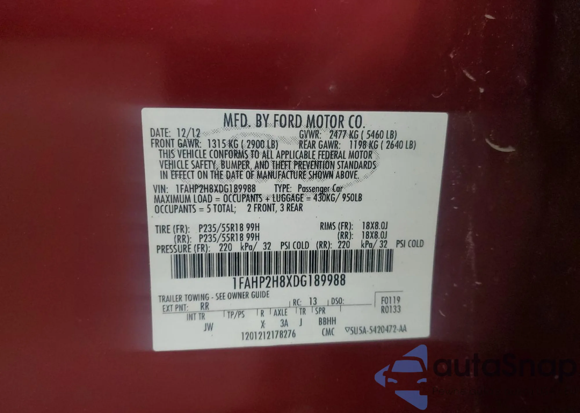 VIN: 1FAHP2H8XDG189988