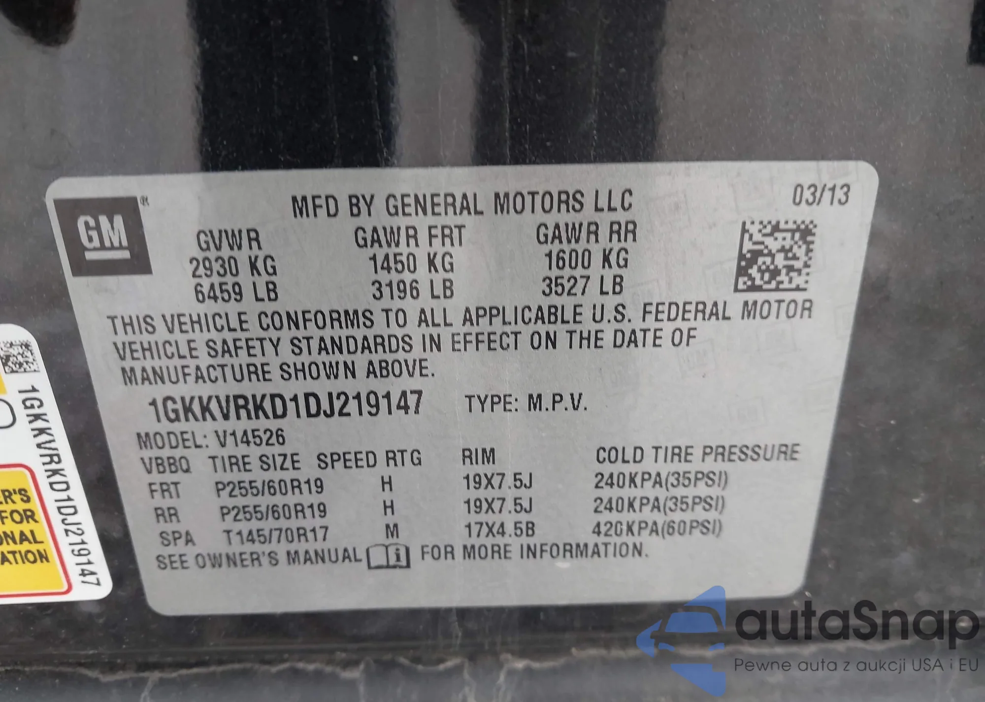 VIN: 1GKKVRKD1DJ219147