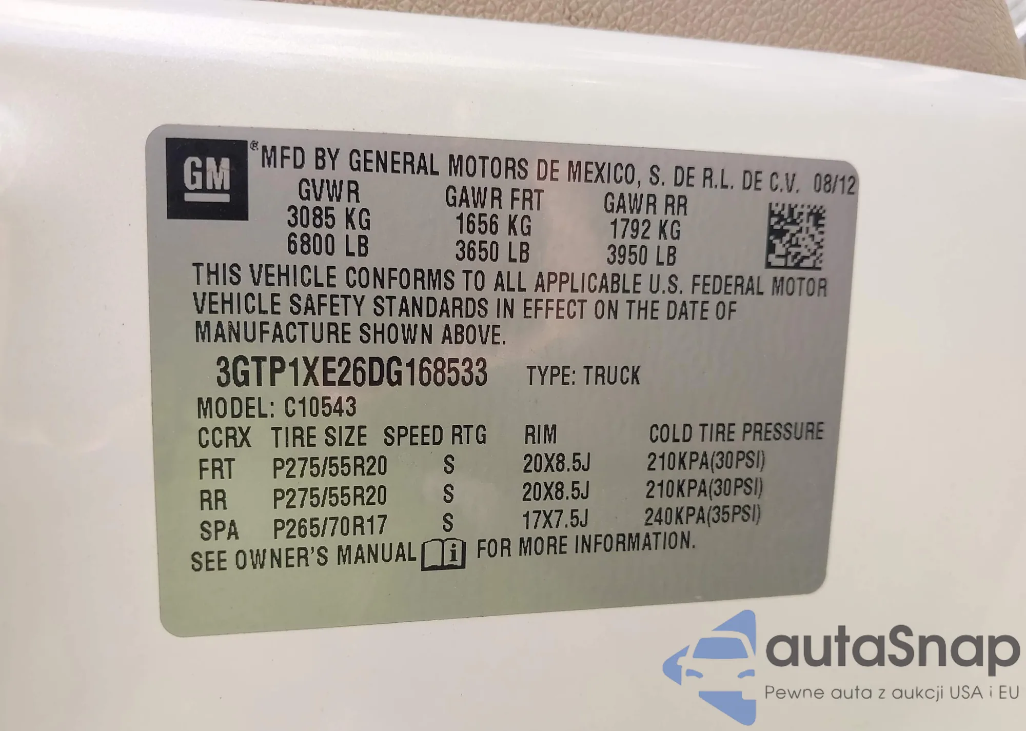 VIN: 3GTP1XE26DG168533