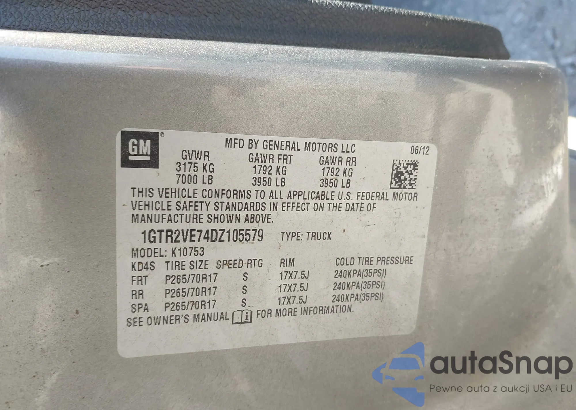 VIN: 1GTR2VE74DZ105579