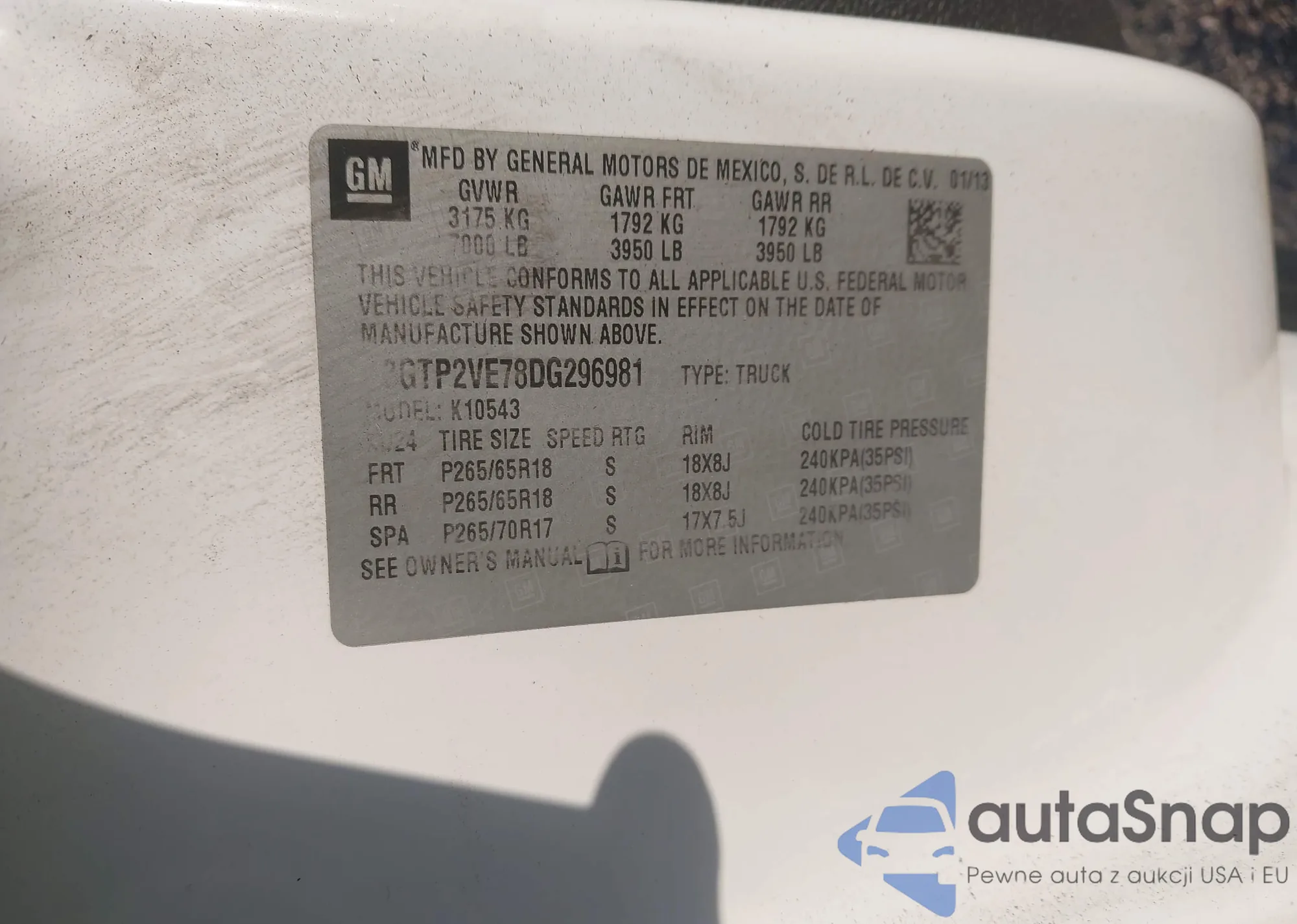 VIN: 3GTP2VE78DG296981