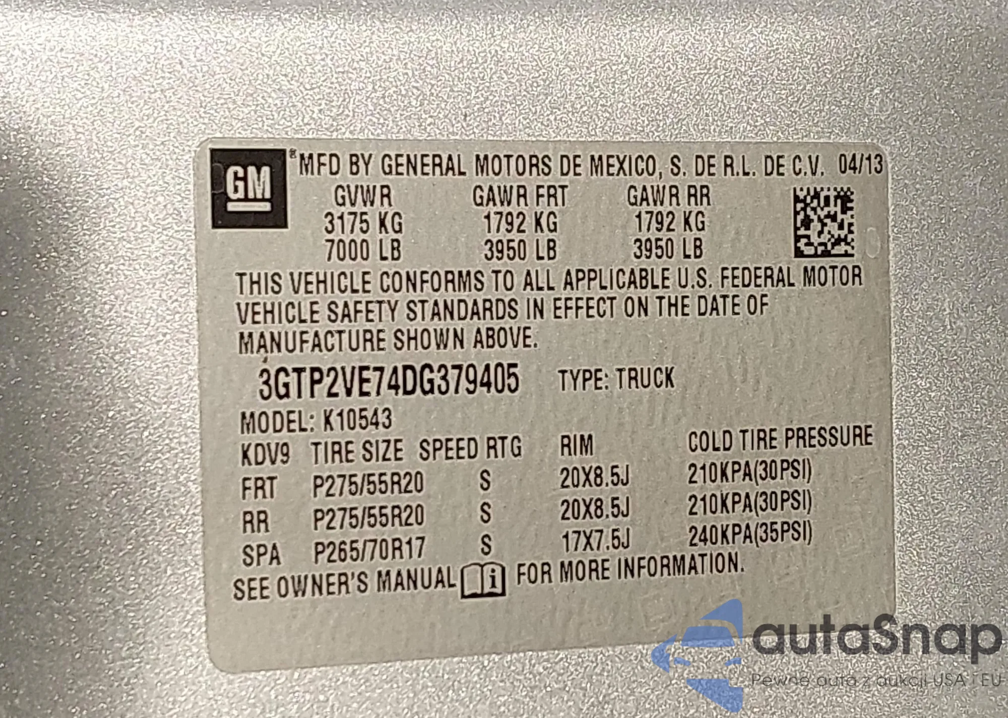 The car GMC Sierra 2013 (VIN 3GTP2VE74DG379405) has not been auctioned before. The documents are clean, and the mileage matches or is below the market average. Sold by an insurance company – we recommend purchase. Delivery to the port will take approx. 6–8 weeks.