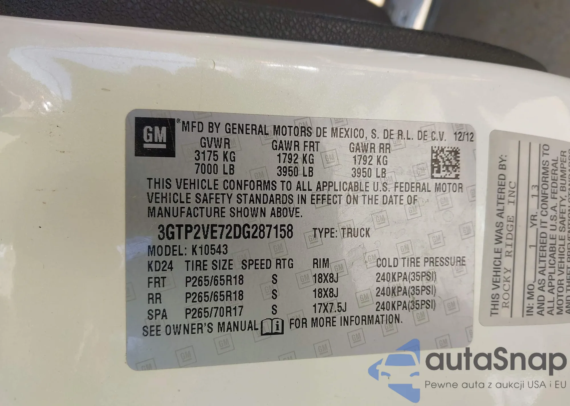 • VIN: 3GTP2VE72DG287158