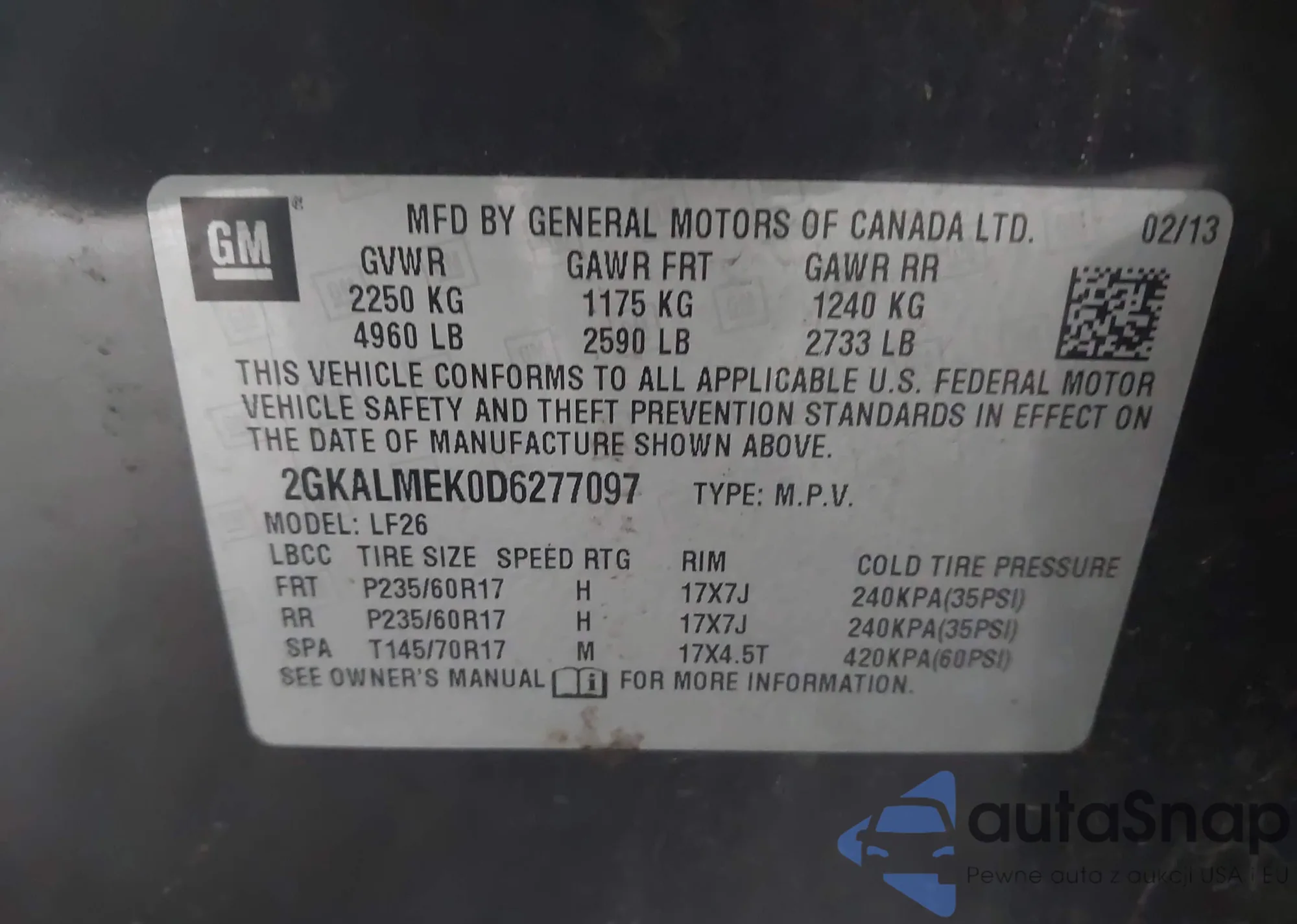 • VIN: 2GKALMEK0D6277097