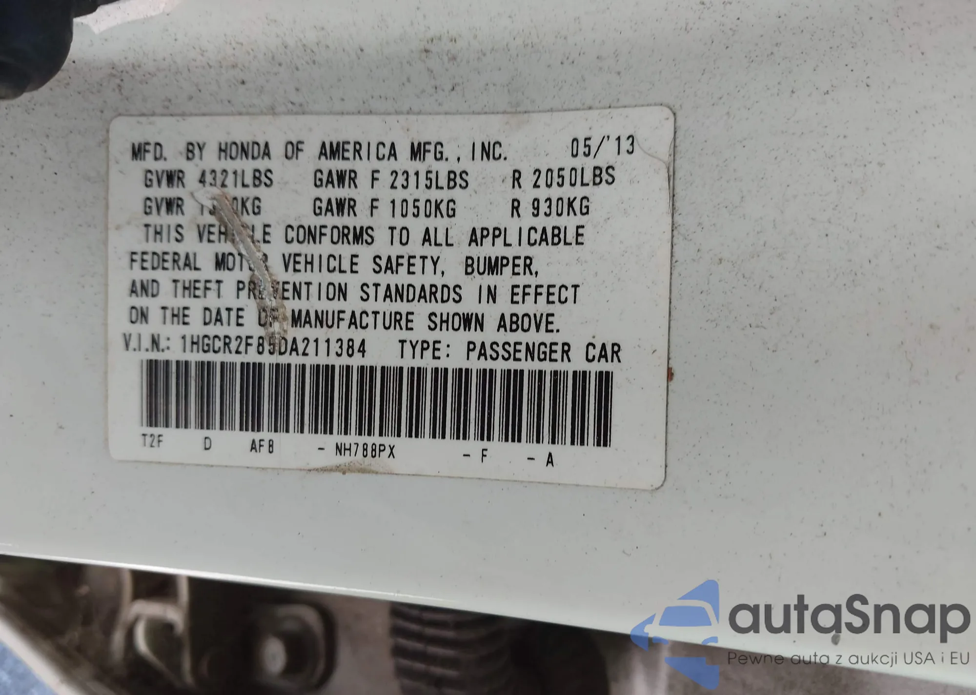 VIN: 1HGCR2F85DA211384