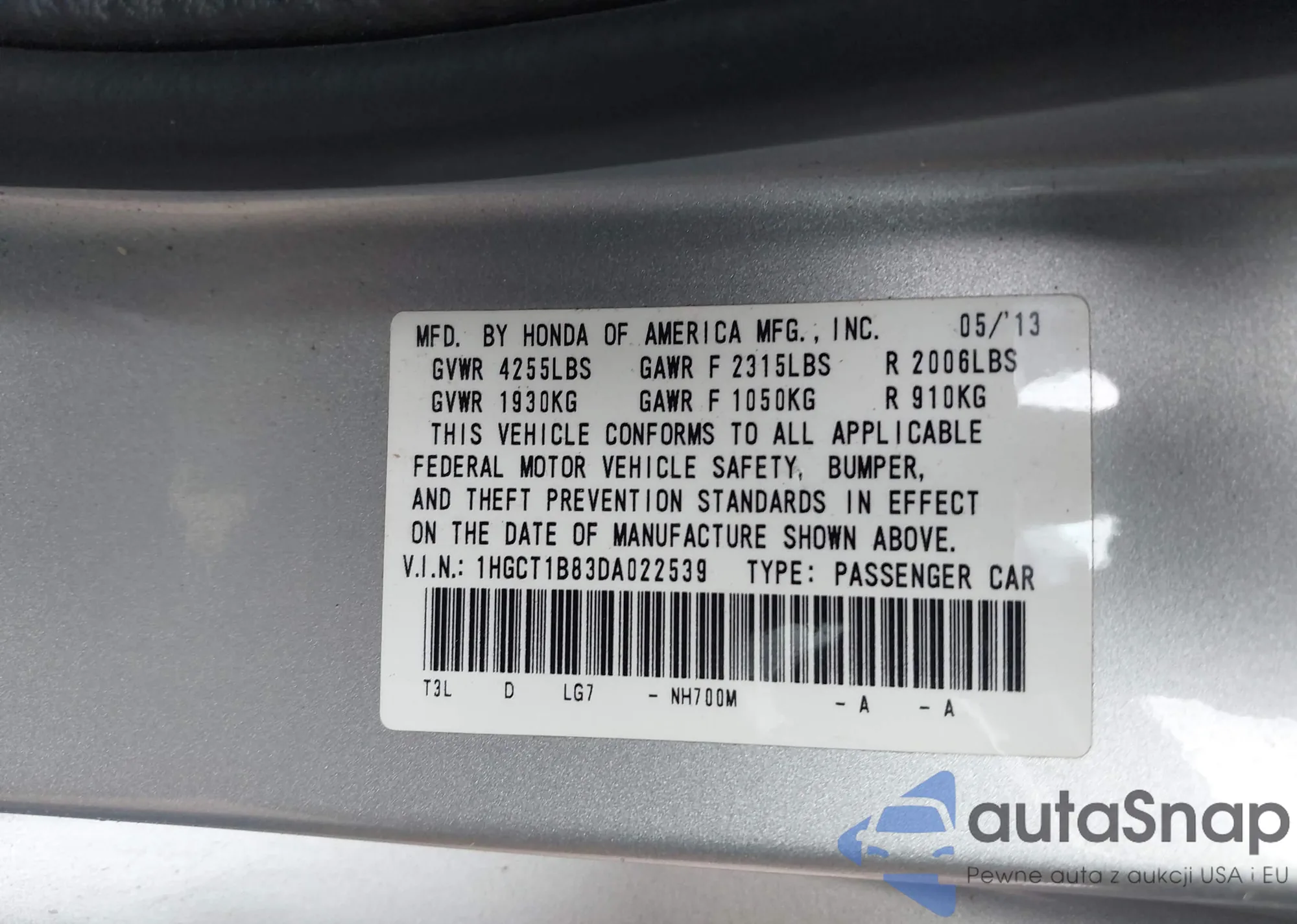 VIN: 1HGCT1B83DA022539