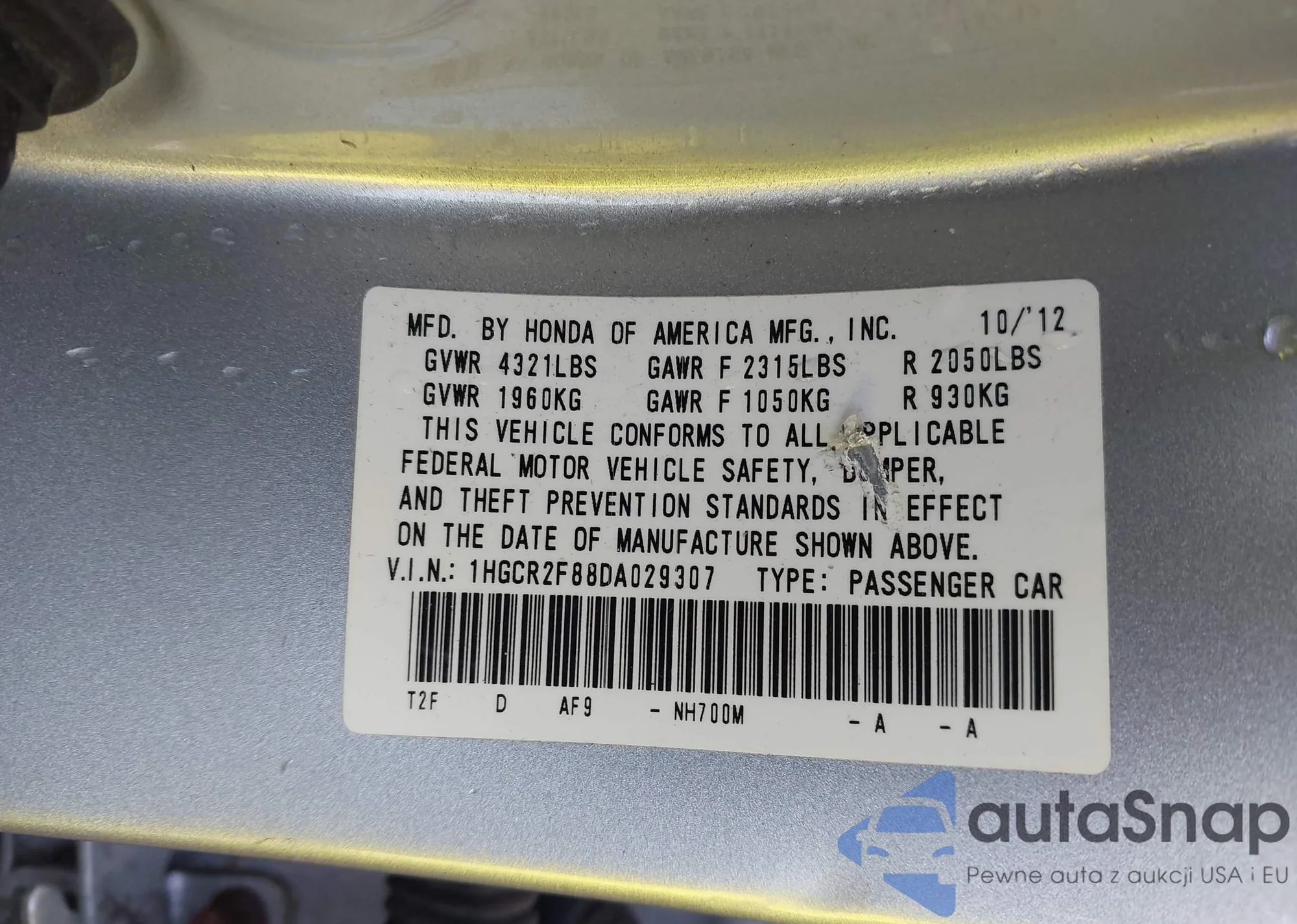 VIN: 1HGCR2F88DA029307