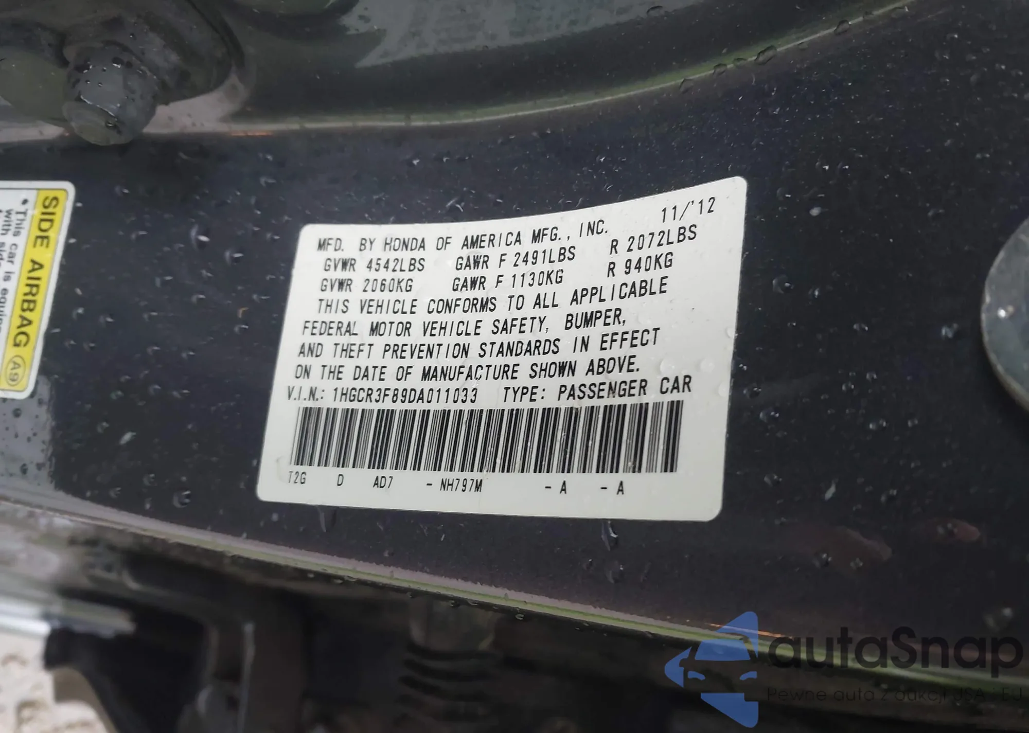 VIN: 1HGCR3F89DA011033