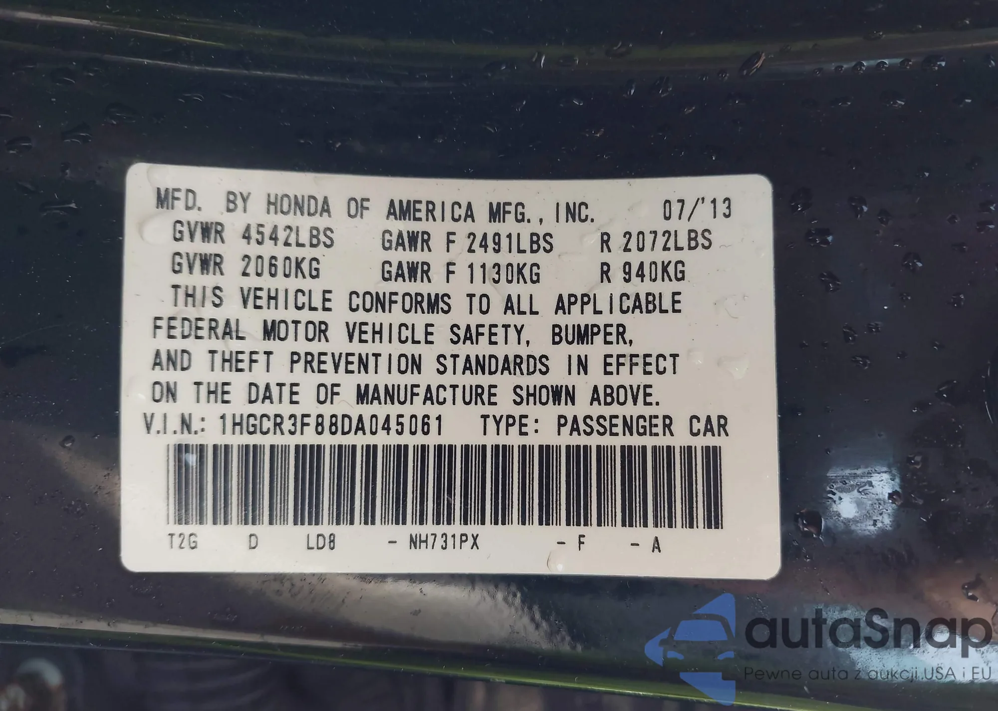 VIN: 1HGCR3F88DA045061