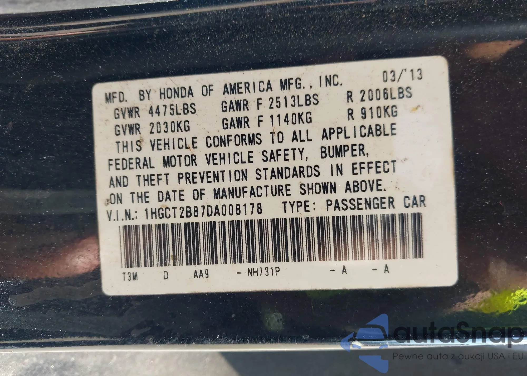 VIN: 1HGCT2B87DA008178