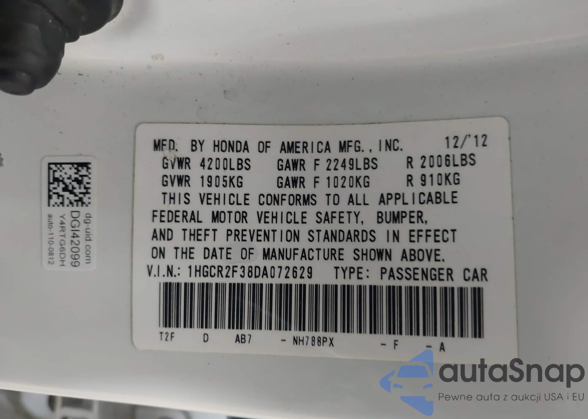 VIN: 1HGCR2F38DA072629