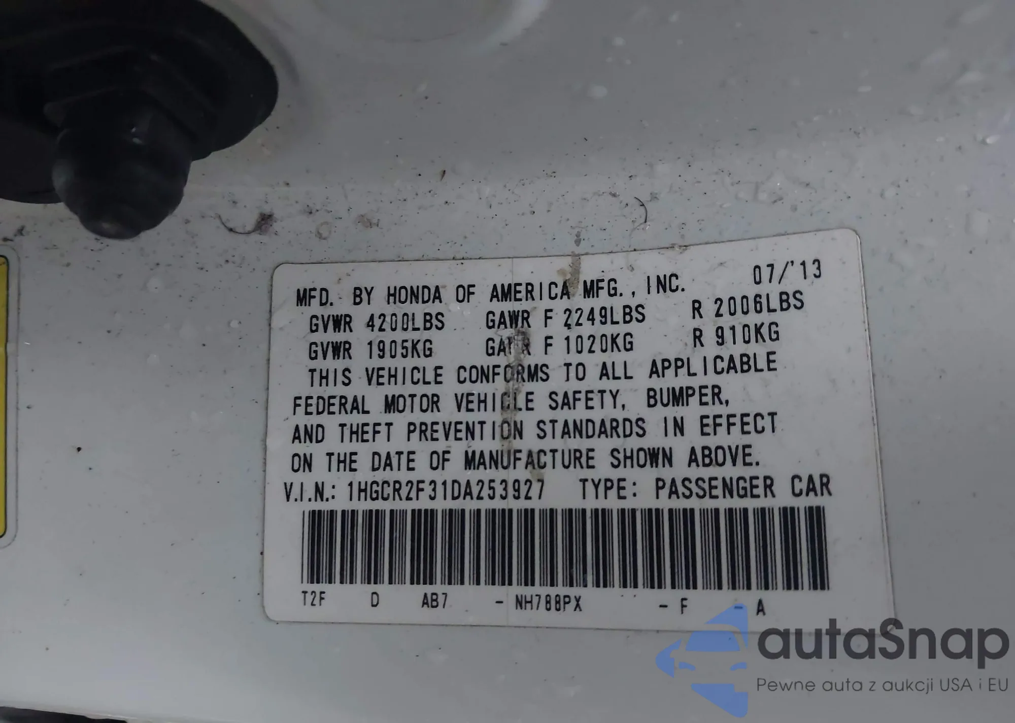 VIN: 1HGCR2F31DA253927