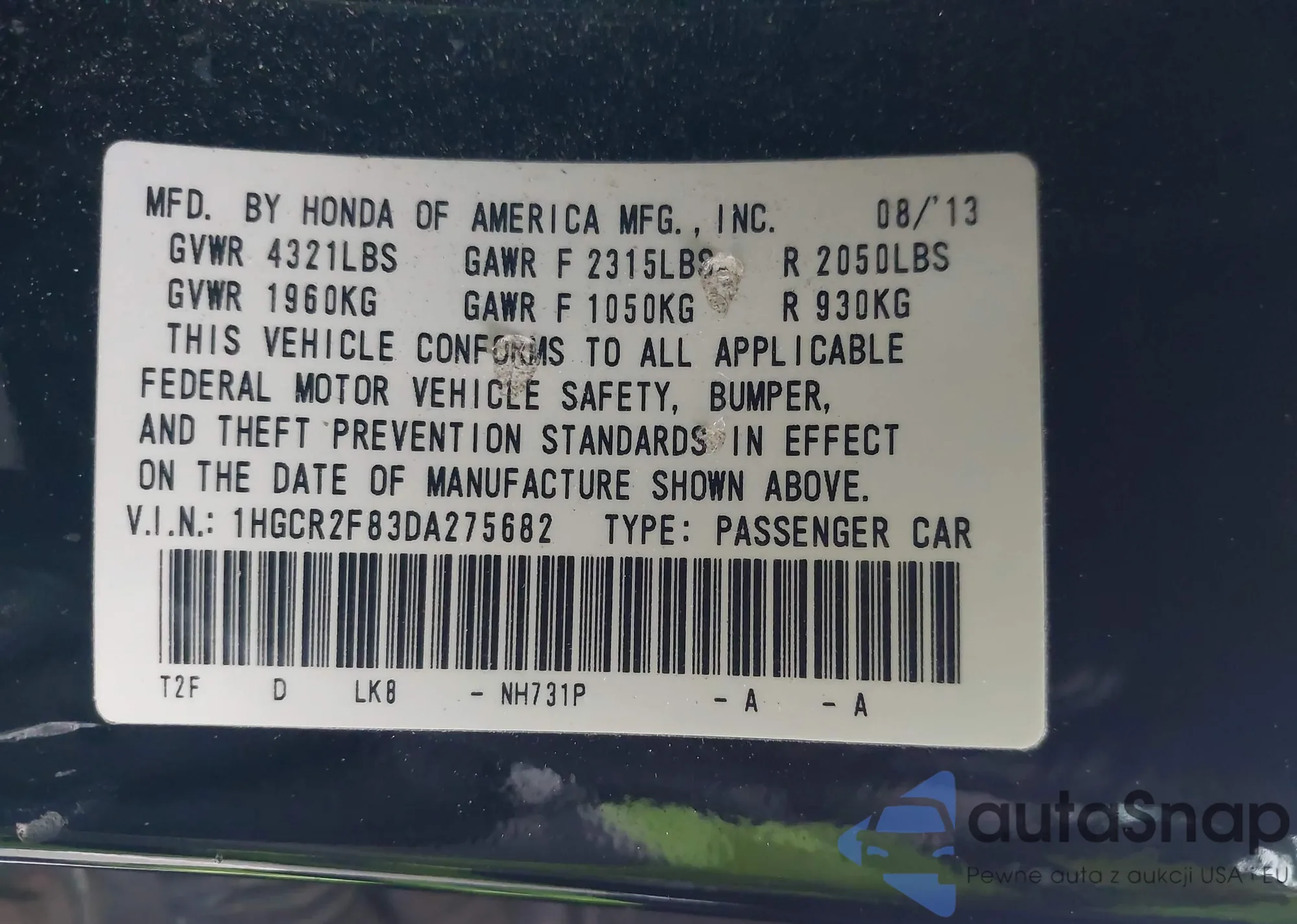 VIN: 1HGCR2F83DA275682