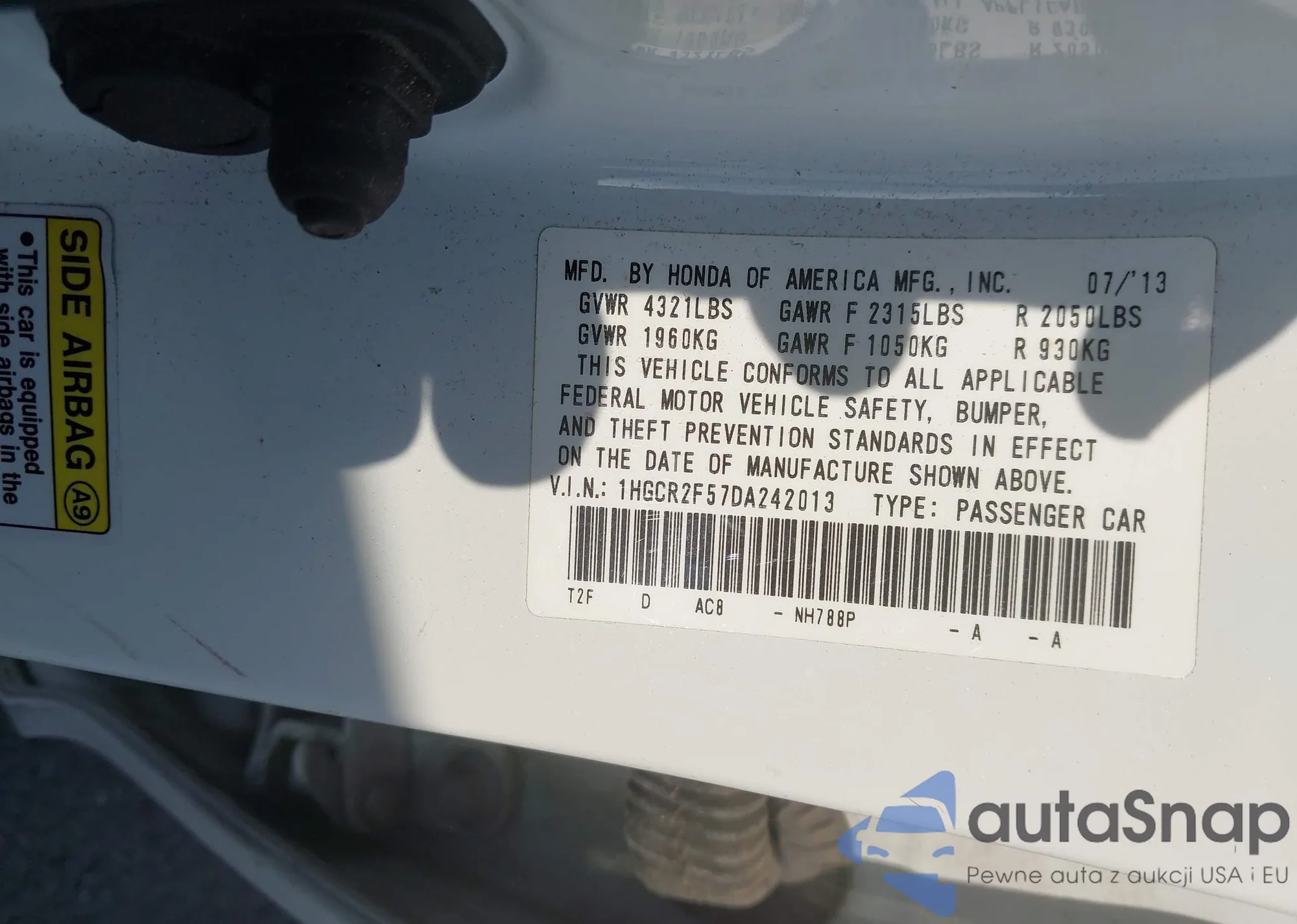 VIN: 1HGCR2F57DA242013
