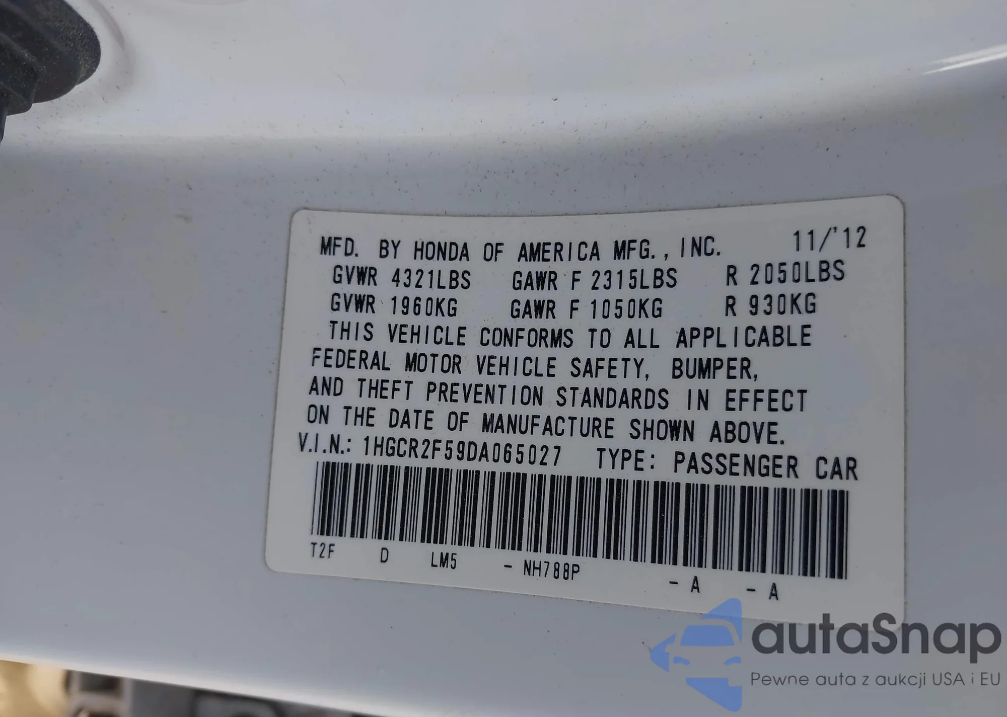 VIN: 1HGCR2F59DA065027