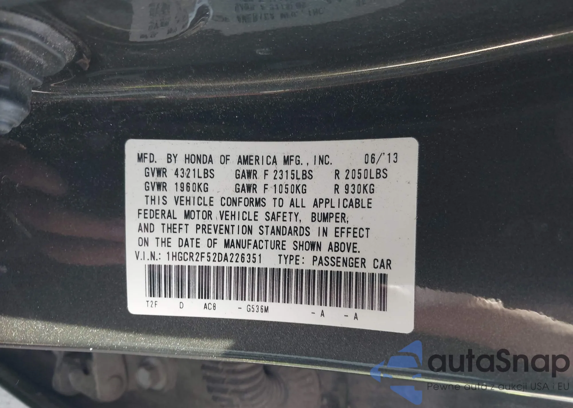 VIN: 1HGCR2F52DA226351