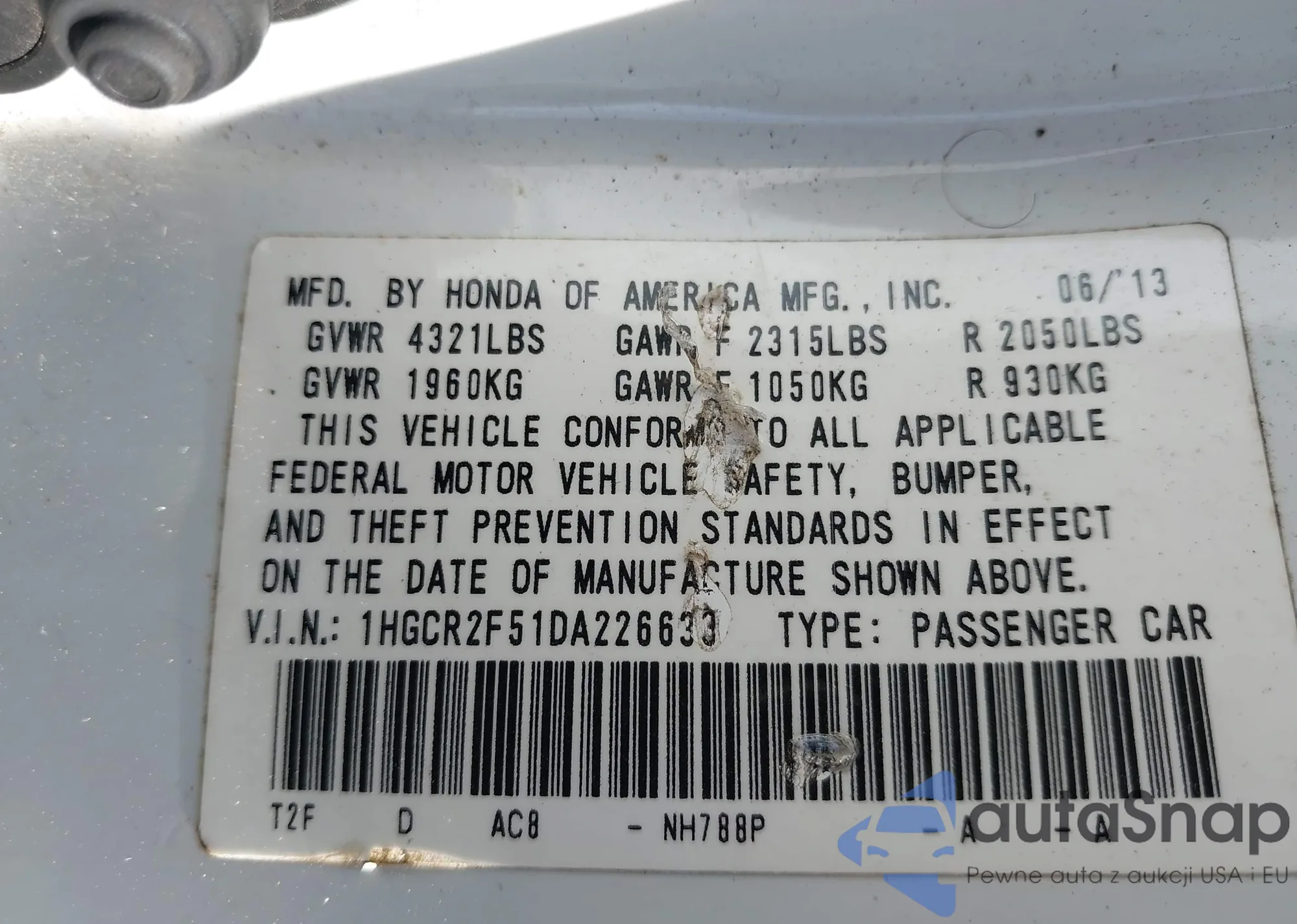 VIN: 1HGCR2F51DA226633