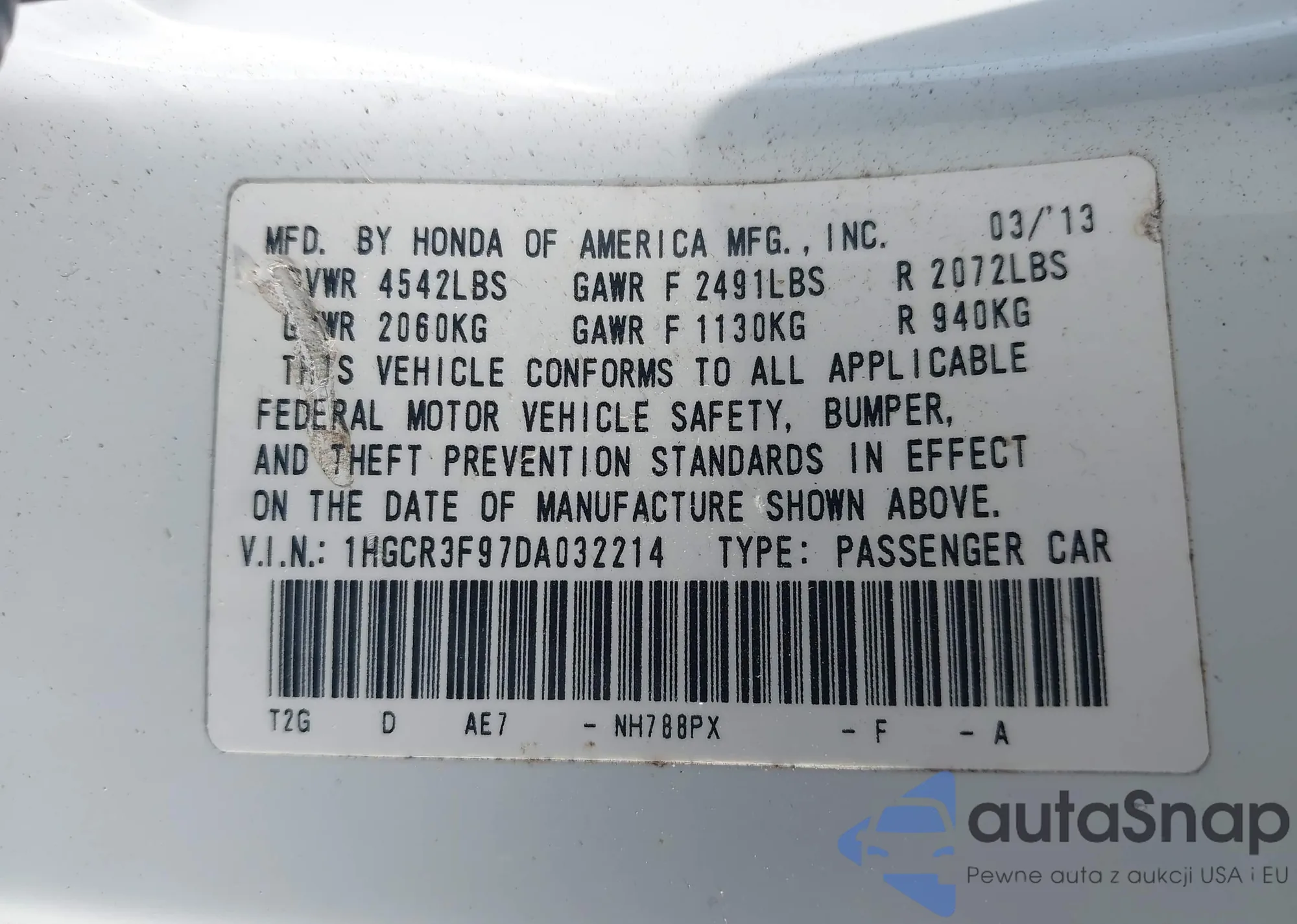VIN: 1HGCR3F97DA032214