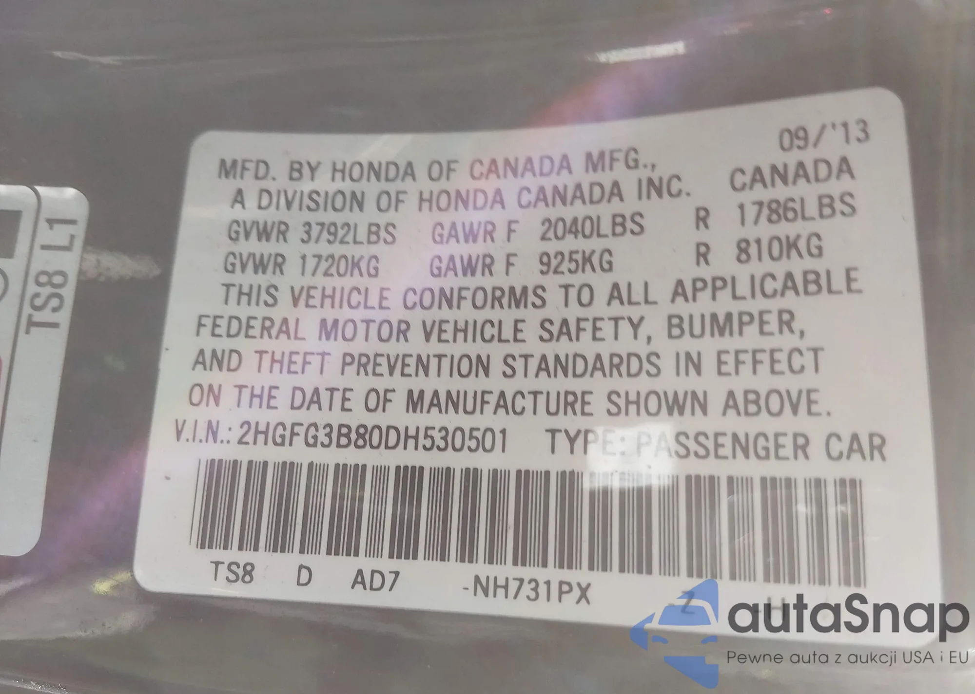 The car Honda Civic 2013 (VIN 2HGFG3B80DH530501) has not been auctioned before. The documents are clean, and the mileage matches or is below the market average. Sold by an insurance company – we recommend purchase. Delivery to the port will take approx. 6–8 weeks.