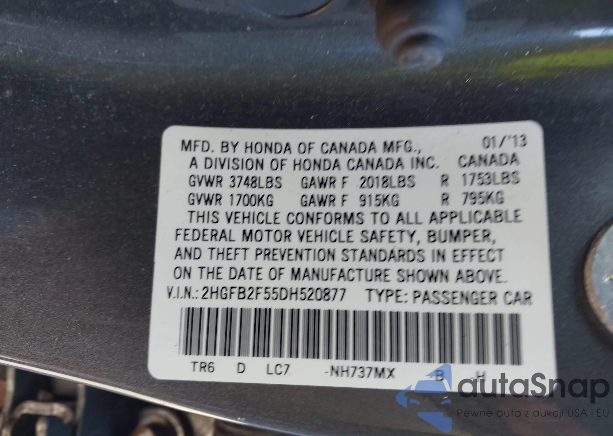 VIN: 2HGFB2F55DH520877