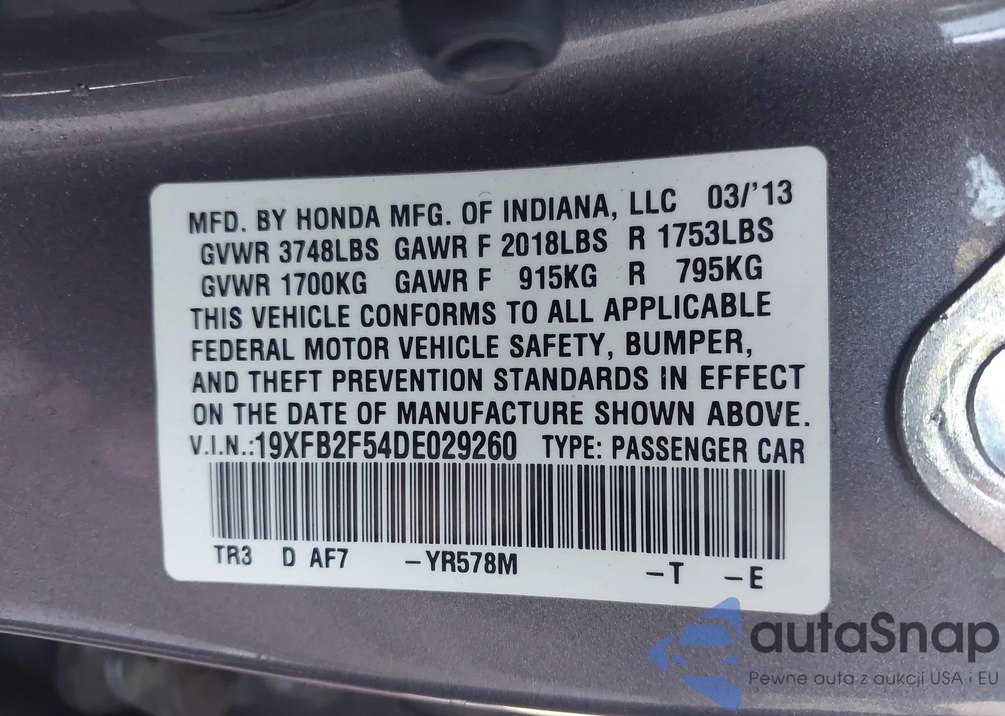 VIN: 19XFB2F54DE029260