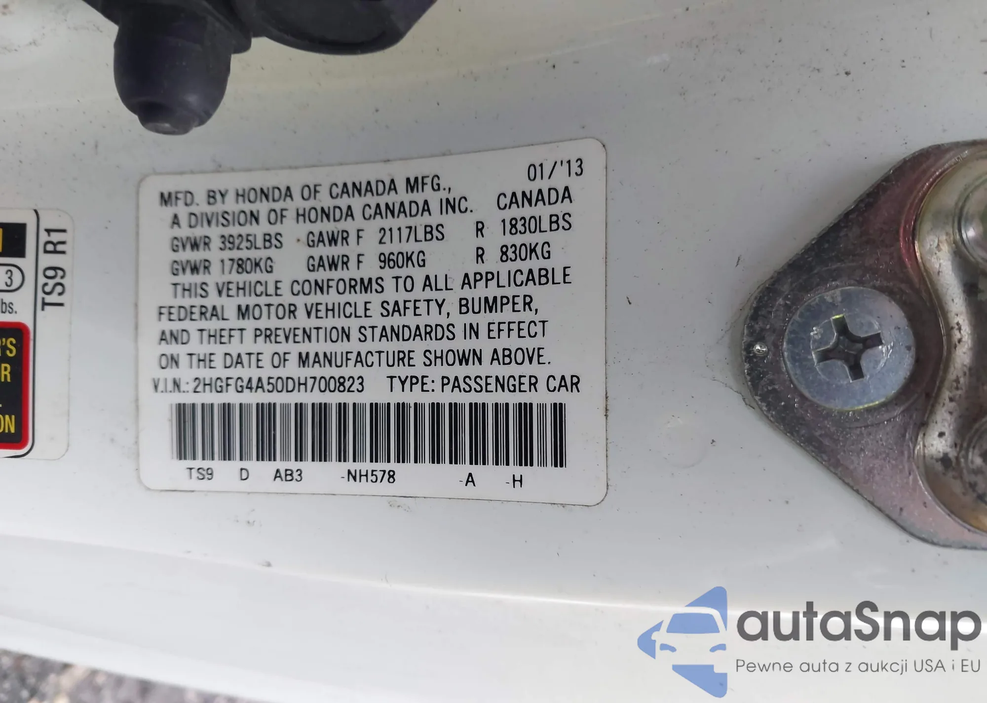 VIN: 2HGFG4A50DH700823