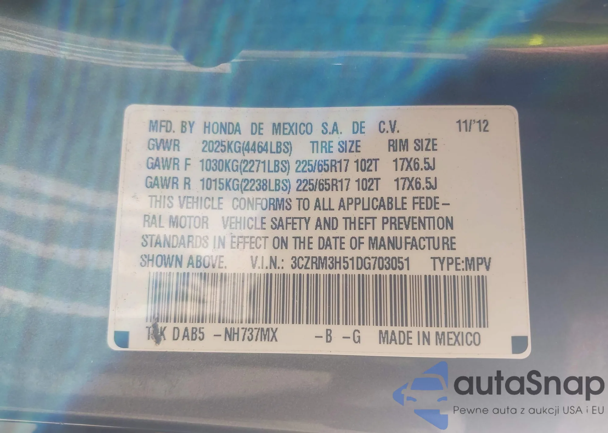 VIN: 3CZRM3H51DG703051