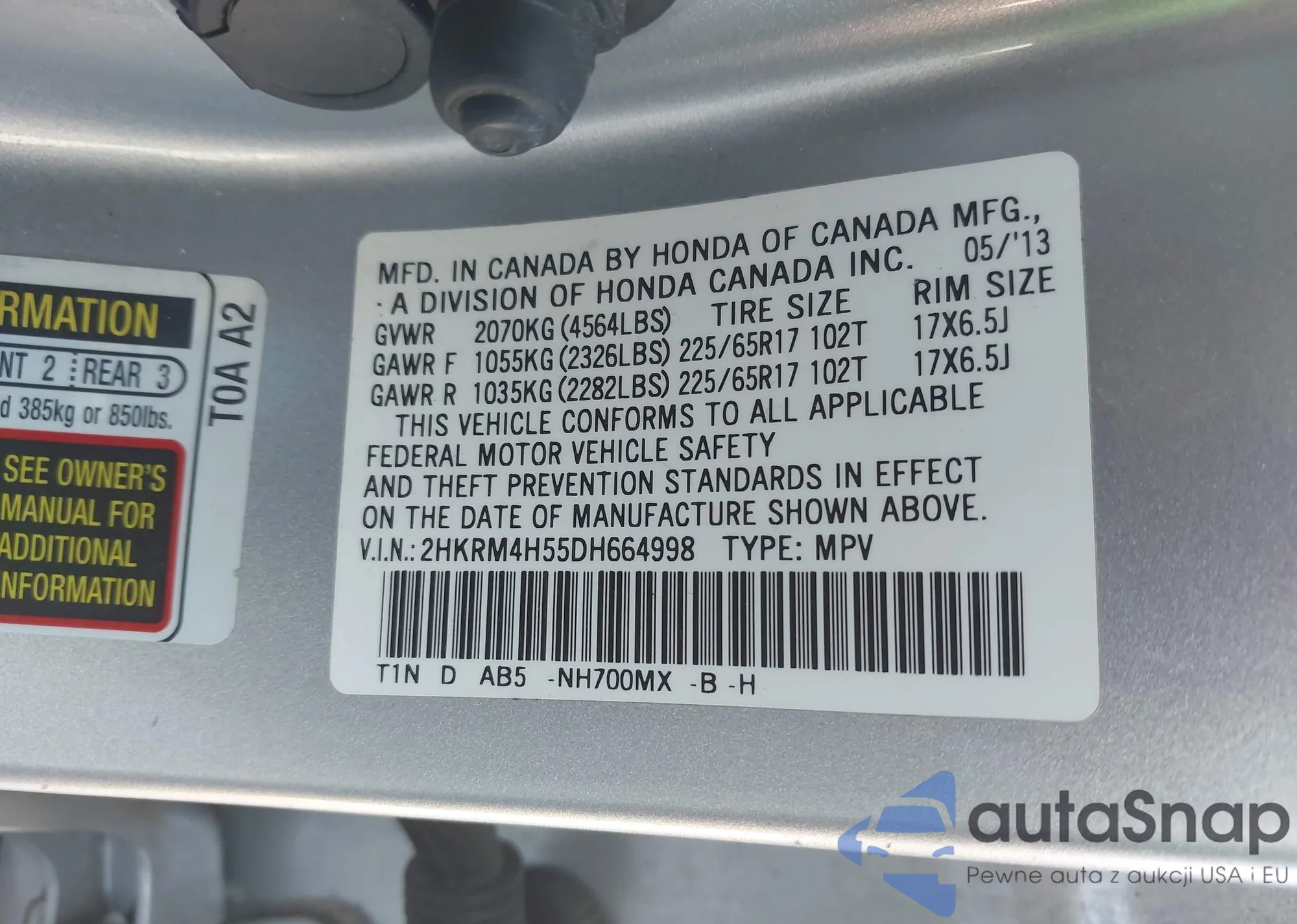 VIN: 2HKRM4H55DH664998