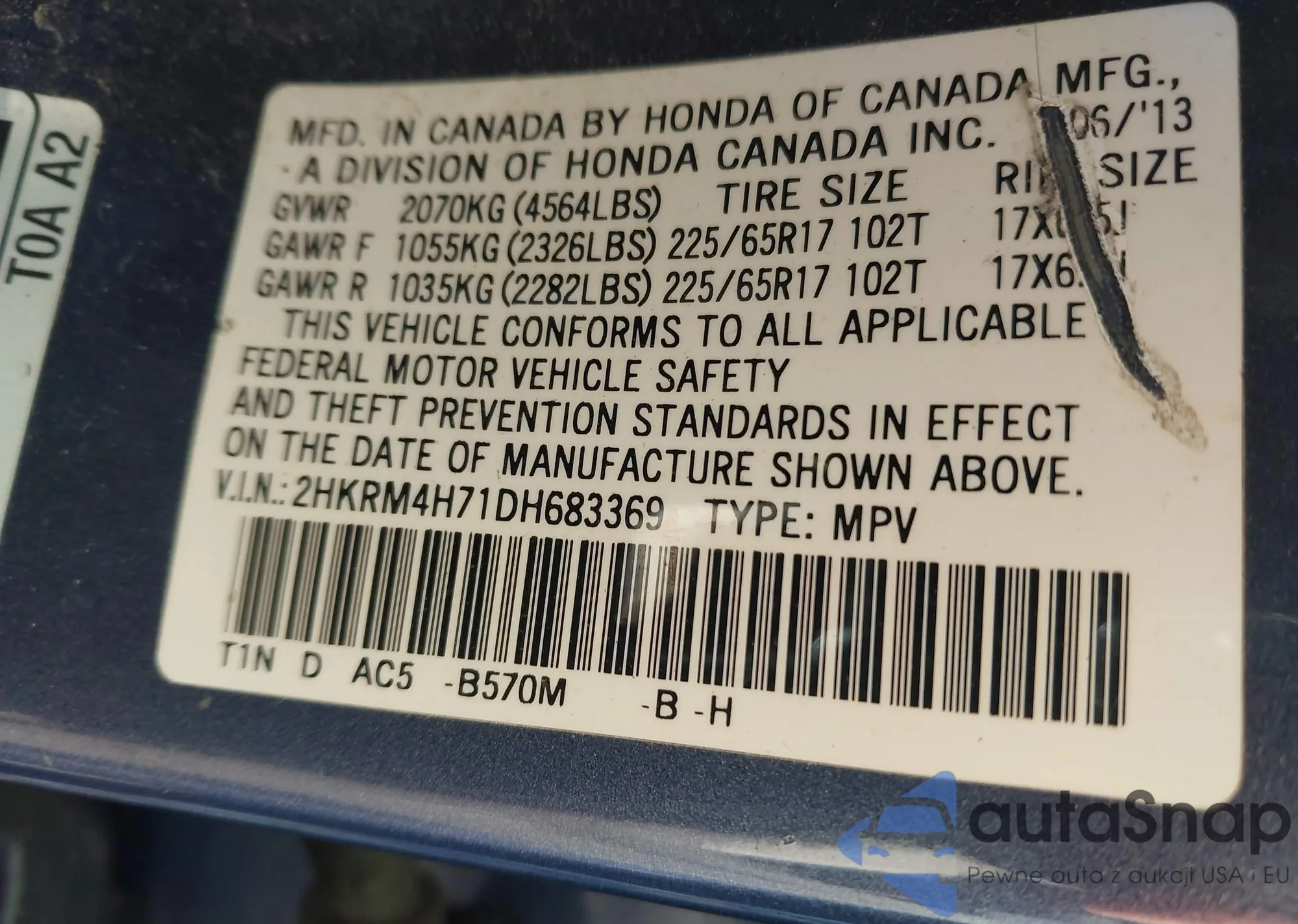 VIN: 2HKRM4H71DH683369
