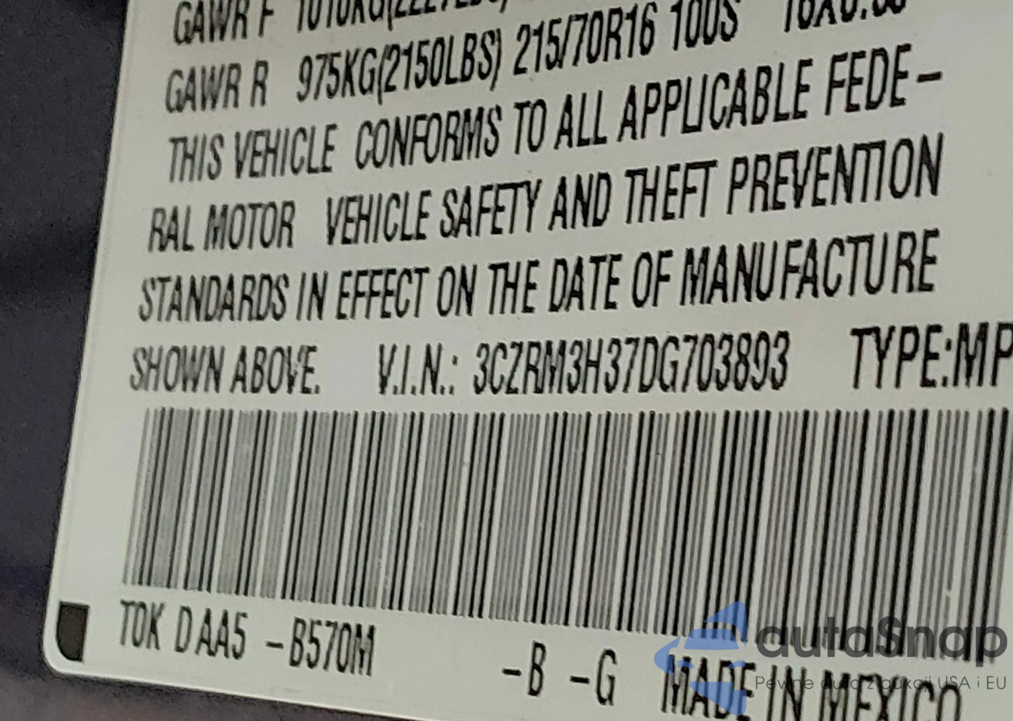 The car Honda CR-V 2013 (VIN 3CZRM3H37DG703893) has not been auctioned before. The documents are clean, and the mileage matches or is below the market average. Sold by an insurance company – we recommend purchase. Delivery to the port will take approx. 6–8 weeks.