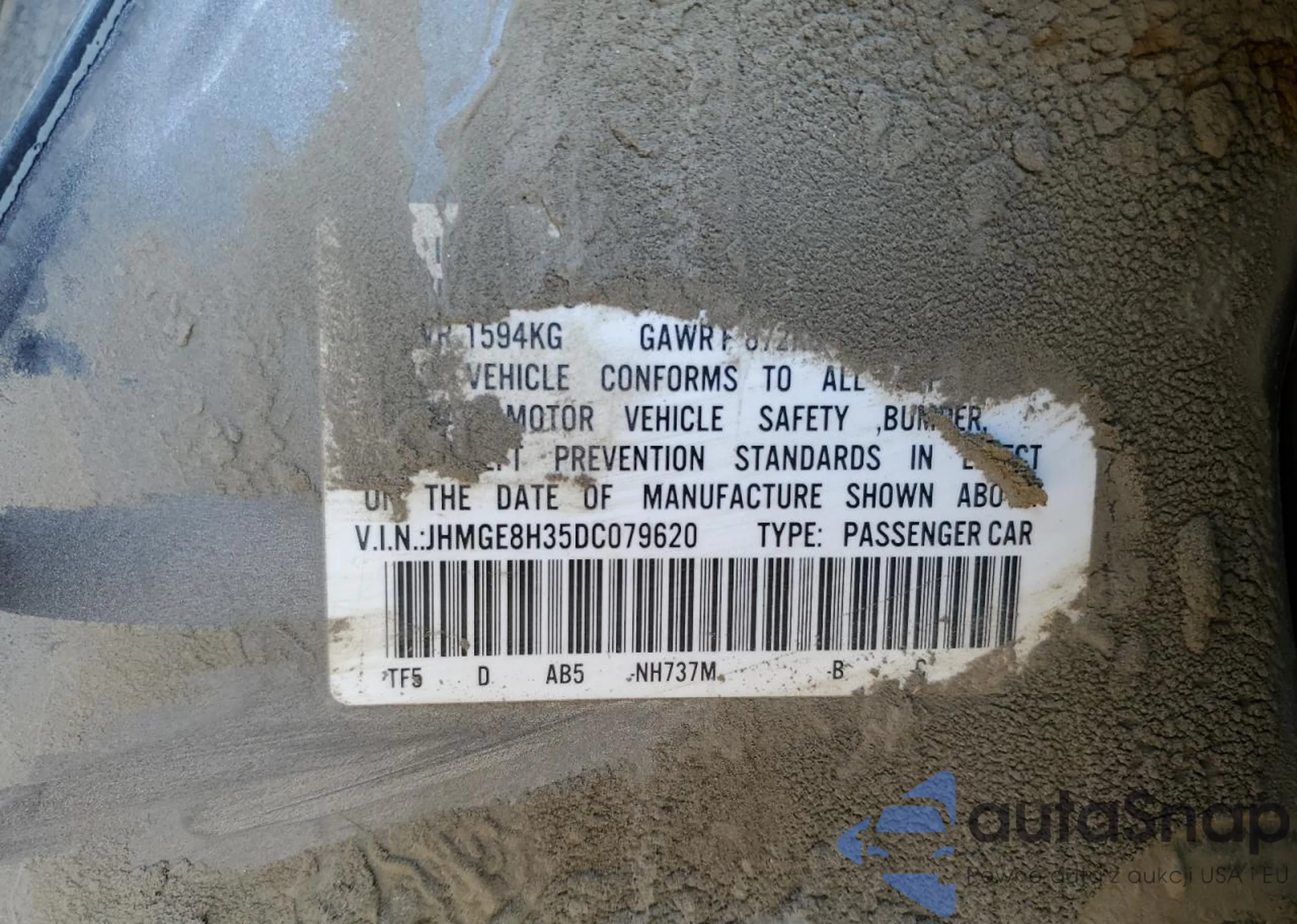 VIN: JHMGE8H35DC079620
