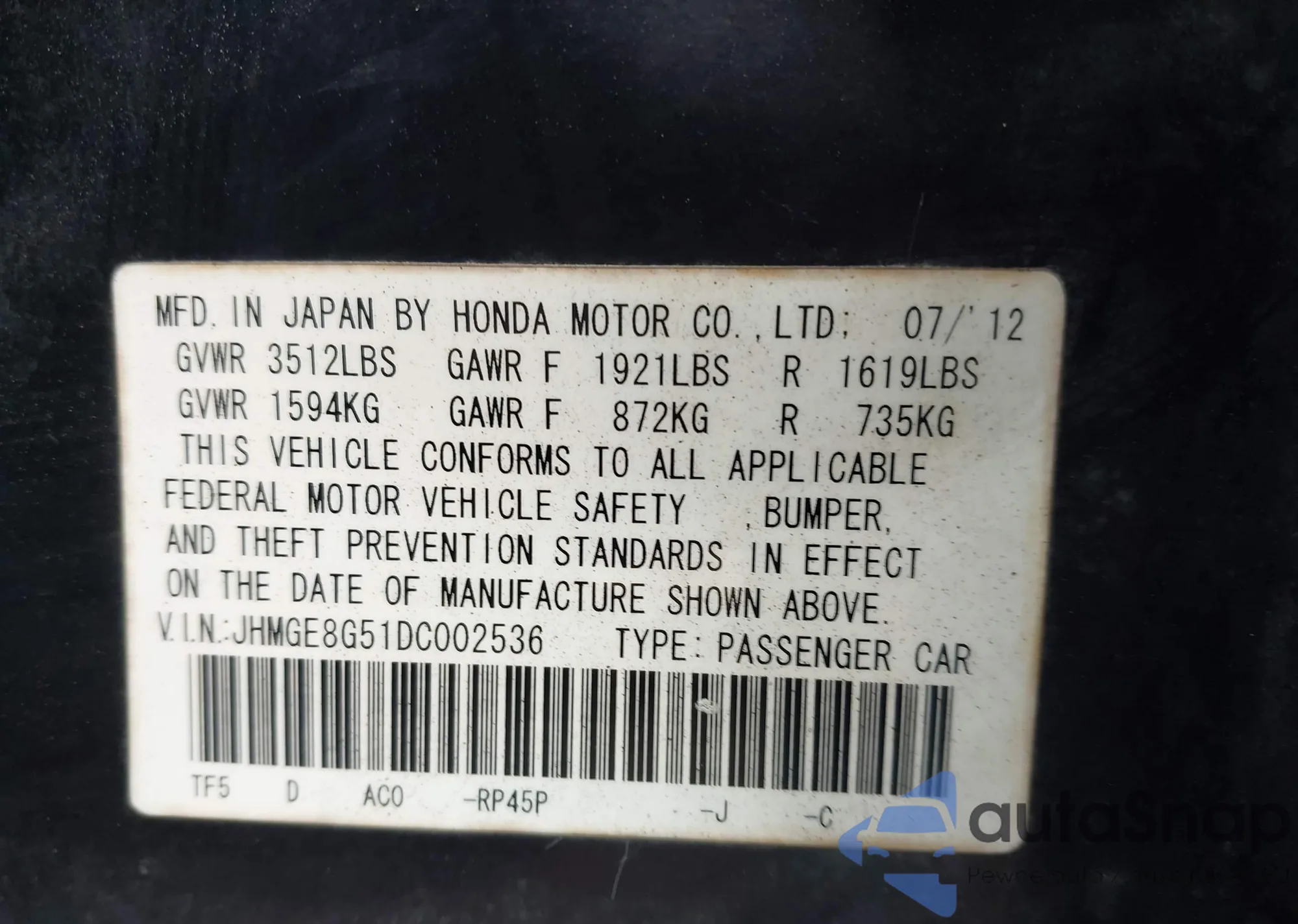 The car Honda Fit 2013 (VIN JHMGE8G51DC002536) has not been auctioned before. The documents are clean, and the mileage matches or is below the market average. Sold by an insurance company – we recommend purchase. Delivery to the port will take approx. 6–8 weeks.