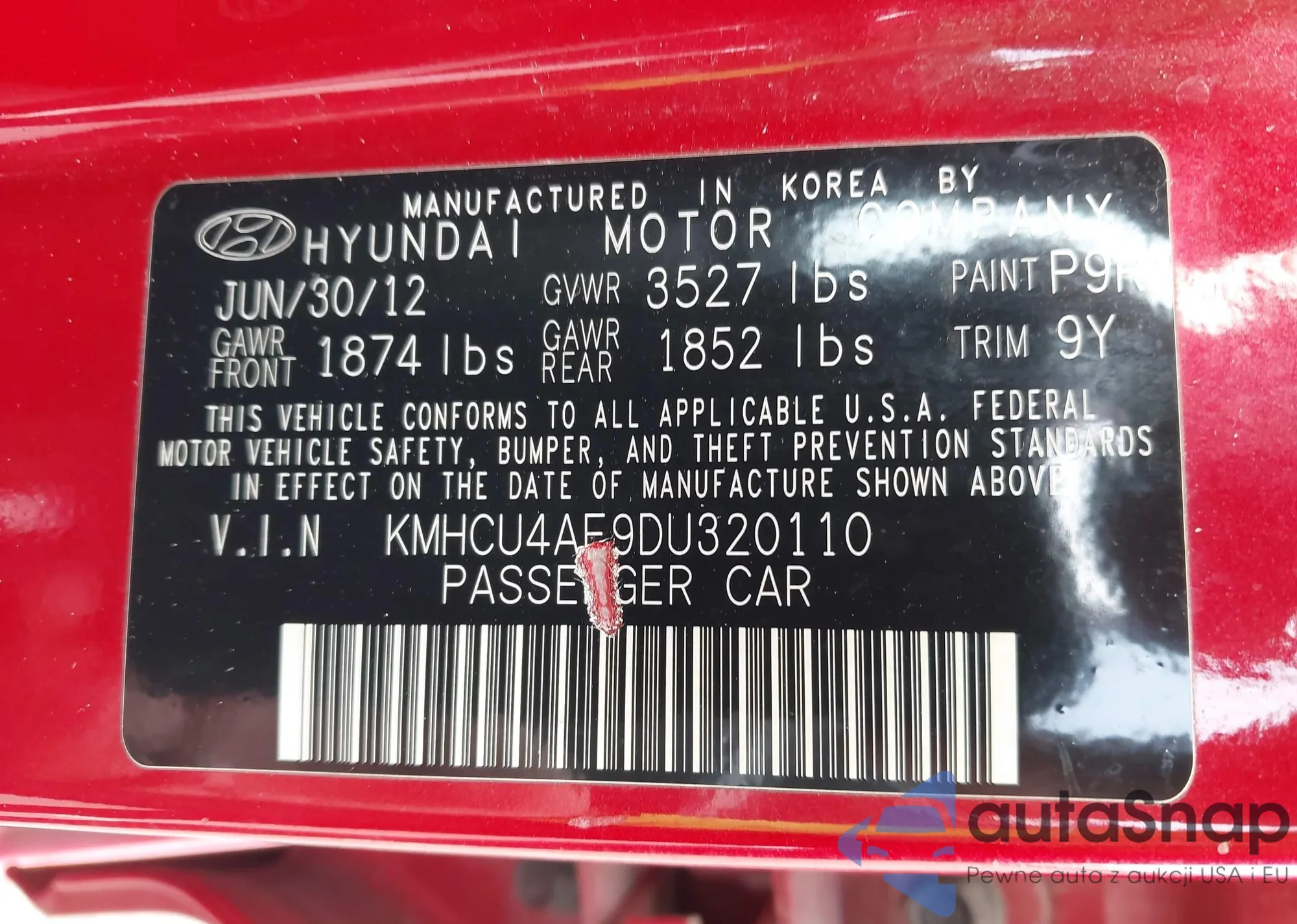 • VIN: KMHCU4AE9DU320110