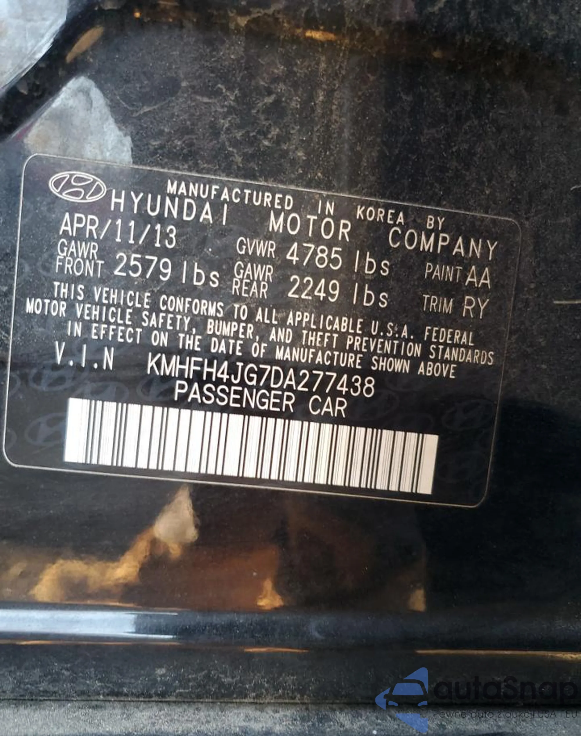 VIN: KMHFH4JG7DA277438