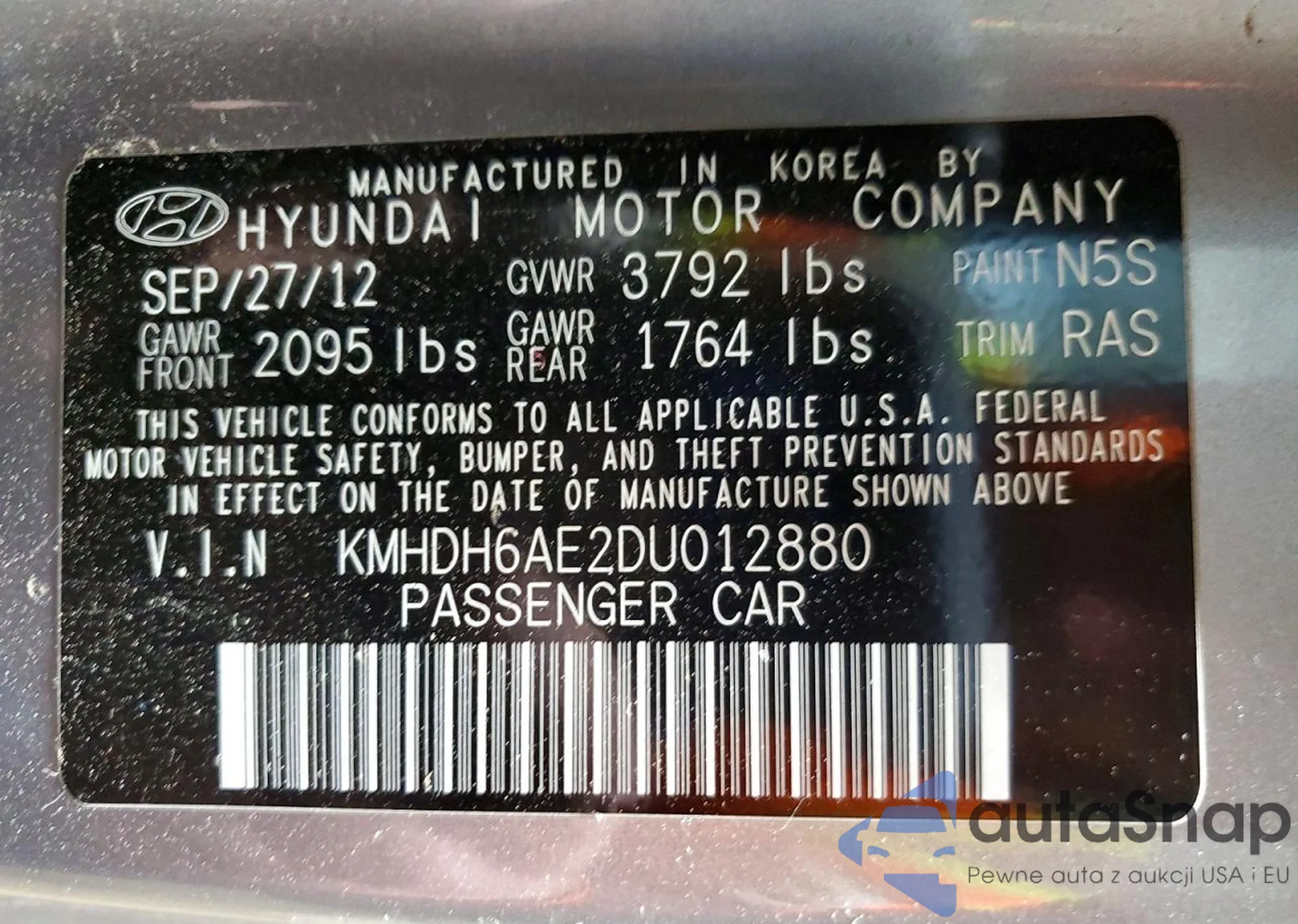 The car Hyundai Elantra 2013 (VIN KMHDH6AE2DU012880) is sold by an unverified seller. We recommend checking the Carfax report and confirming registration possibilities before purchase.