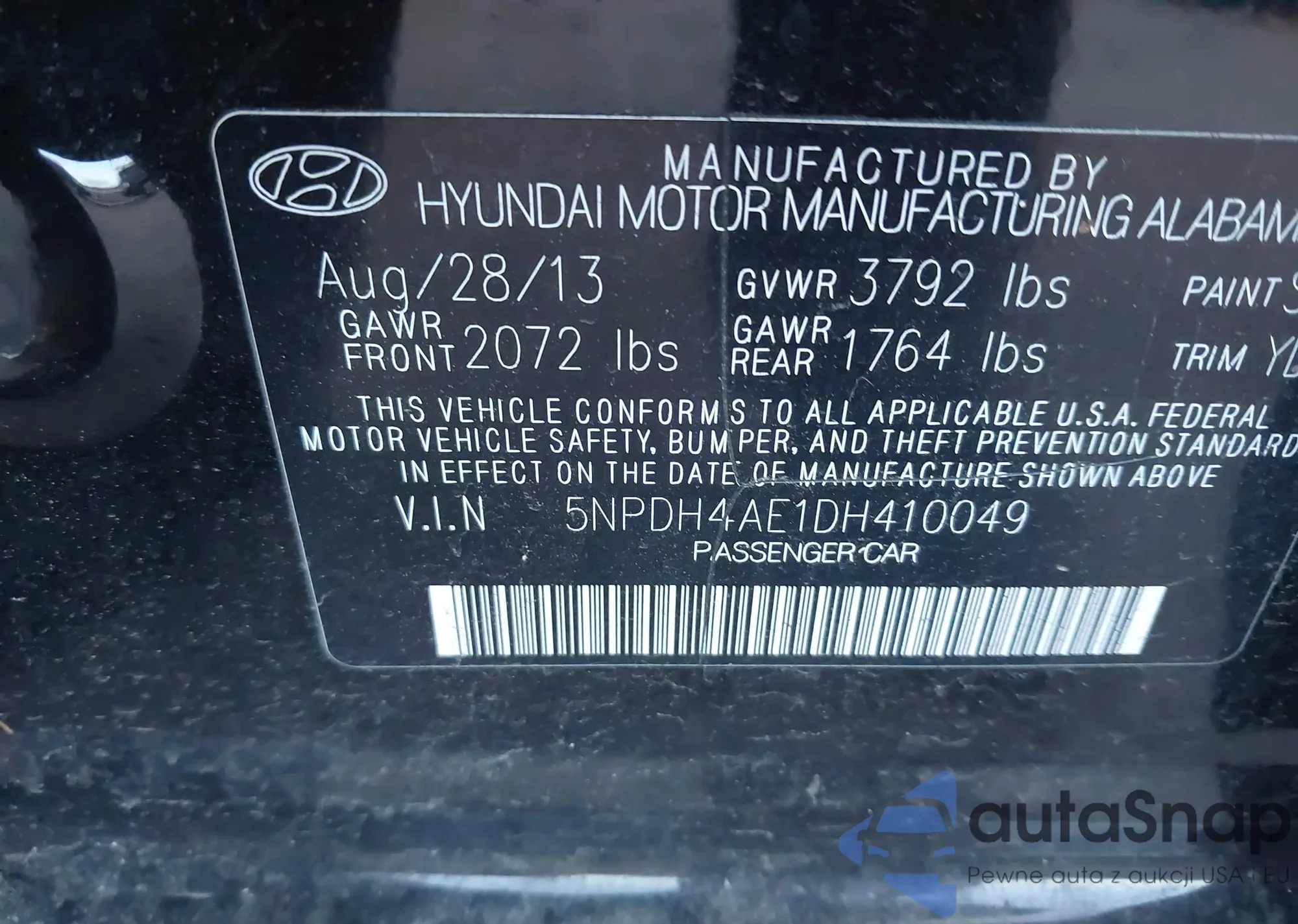 VIN: 5NPDH4AE1DH410049