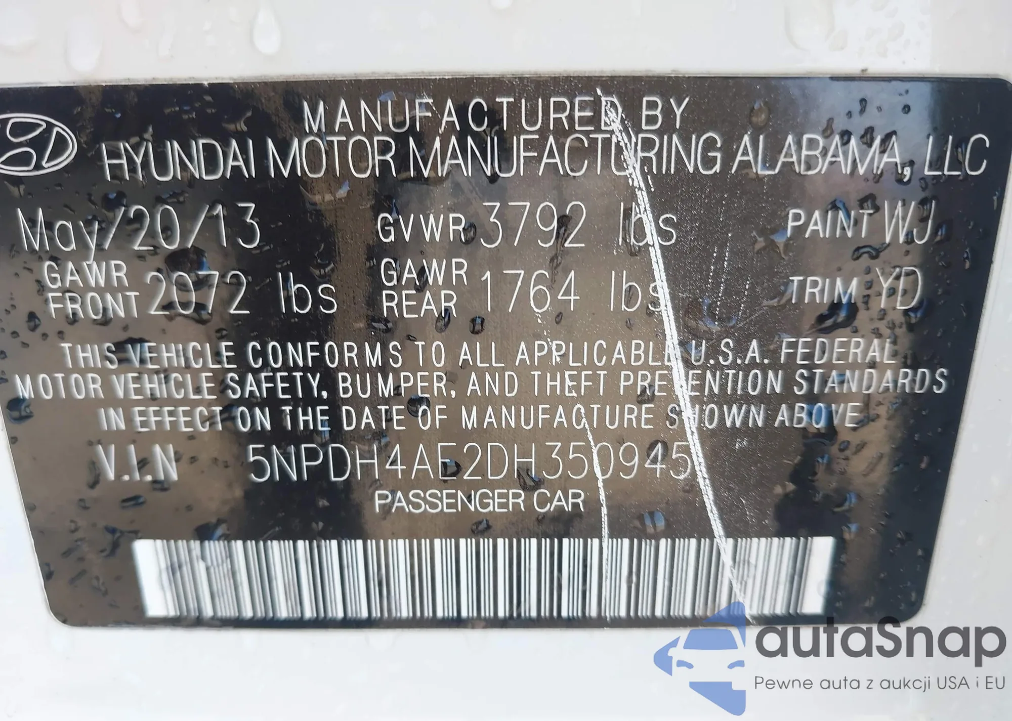 VIN: 5NPDH4AE2DH350945