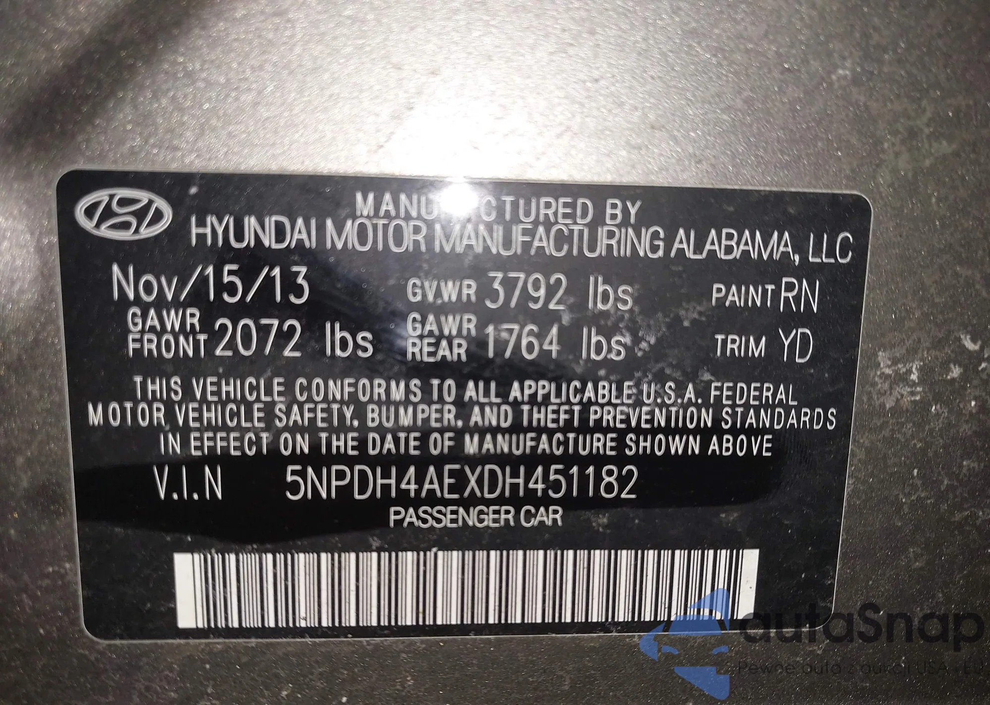 VIN: 5NPDH4AEXDH451182