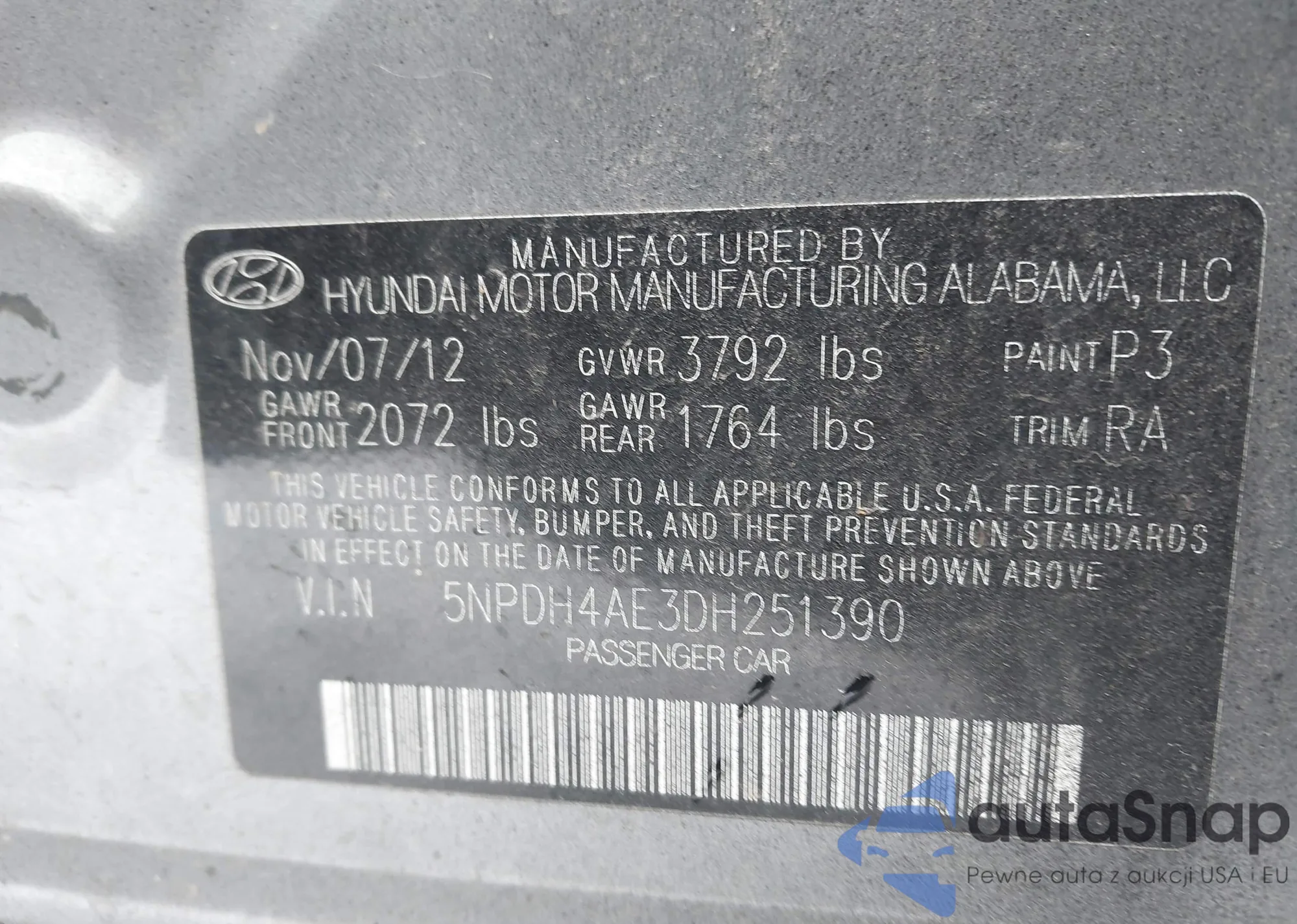 VIN: 5NPDH4AE3DH251390