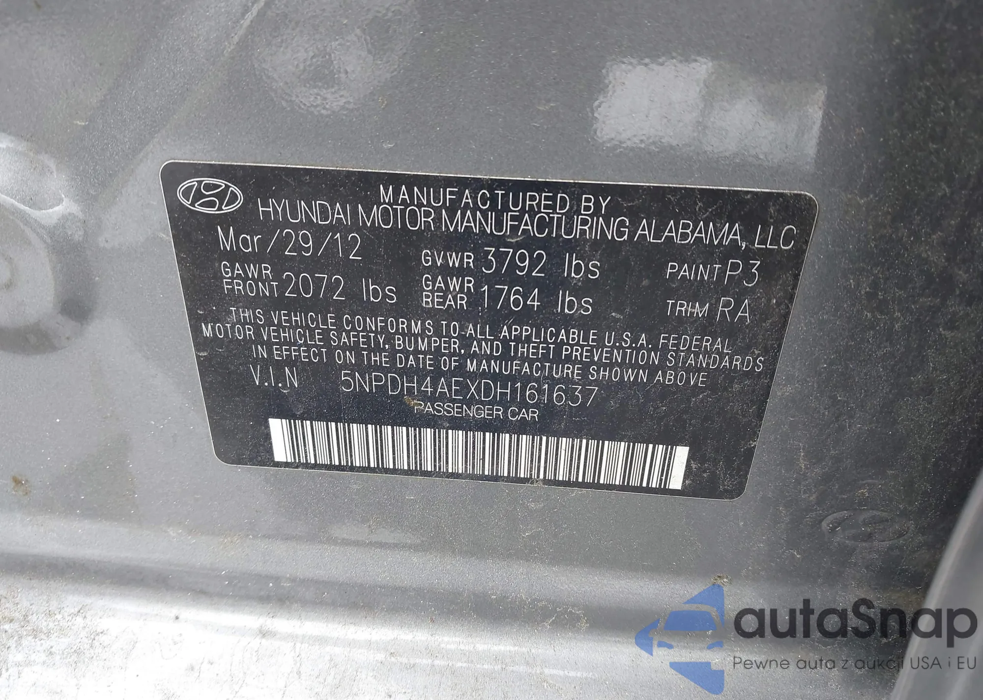 • VIN: 5NPDH4AEXDH161637