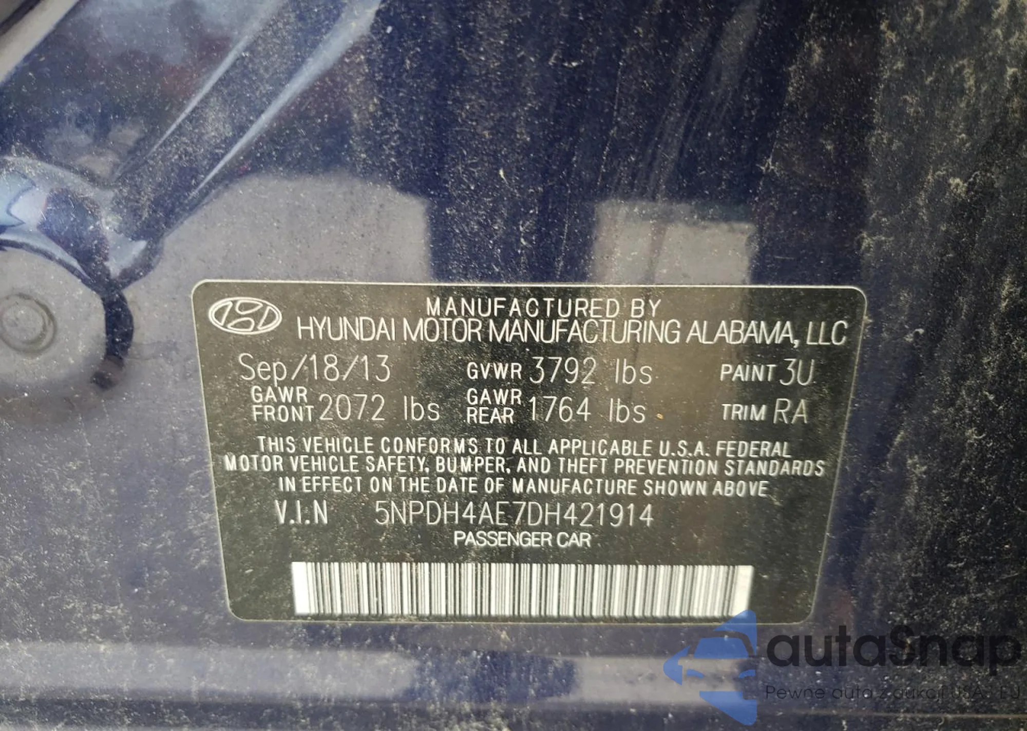 VIN: 5NPDH4AE7DH421914