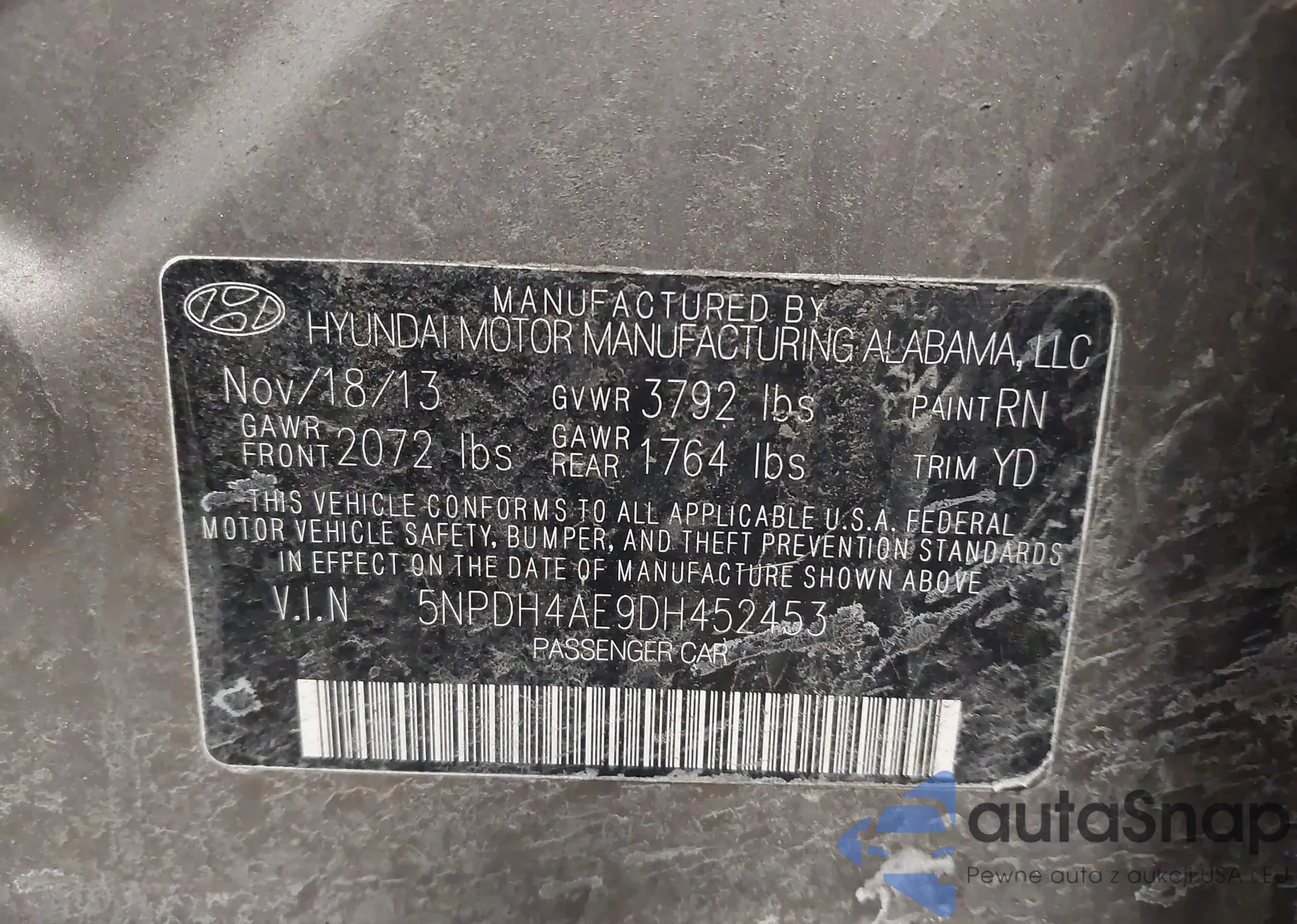 The car Hyundai Elantra 2013 (VIN 5NPDH4AE9DH452453) has not been auctioned before. The documents are clean, and the mileage matches or is below the market average. Sold by an insurance company – we recommend purchase. Delivery to the port will take approx. 6–8 weeks.
